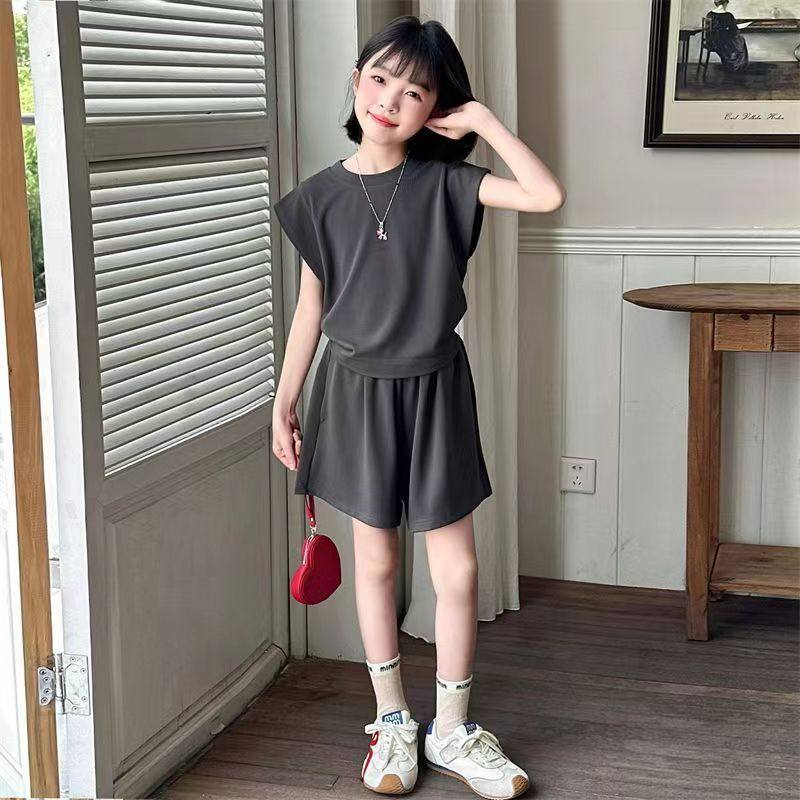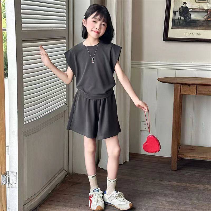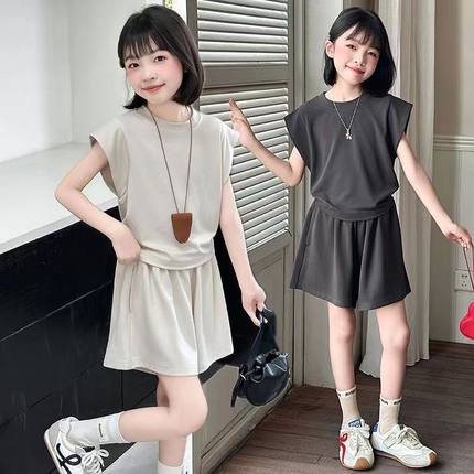 女童运动短裤套装夏季2025新款女孩中大童洋气夏装短袖休闲两件套