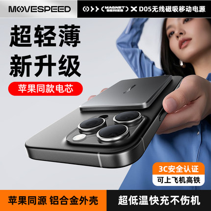 【新国标3C认证】移速磁吸充电宝自带线适用16手机超薄MagSafe无线充迷你快充移动电源便携小巧