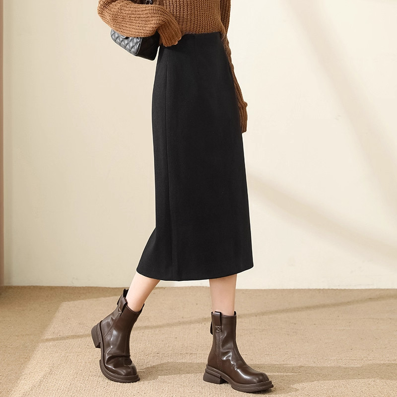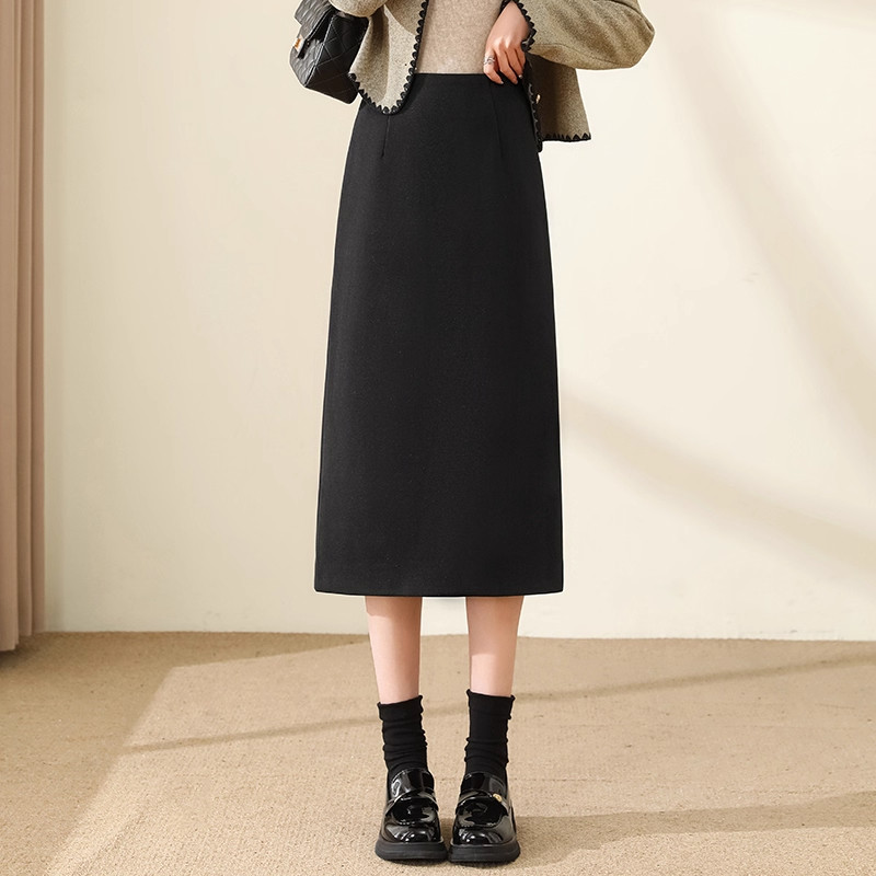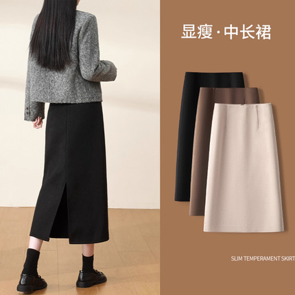 黑色毛呢半身裙女秋冬2025新款直筒冬裙气质小个子中长包臀a字裙
