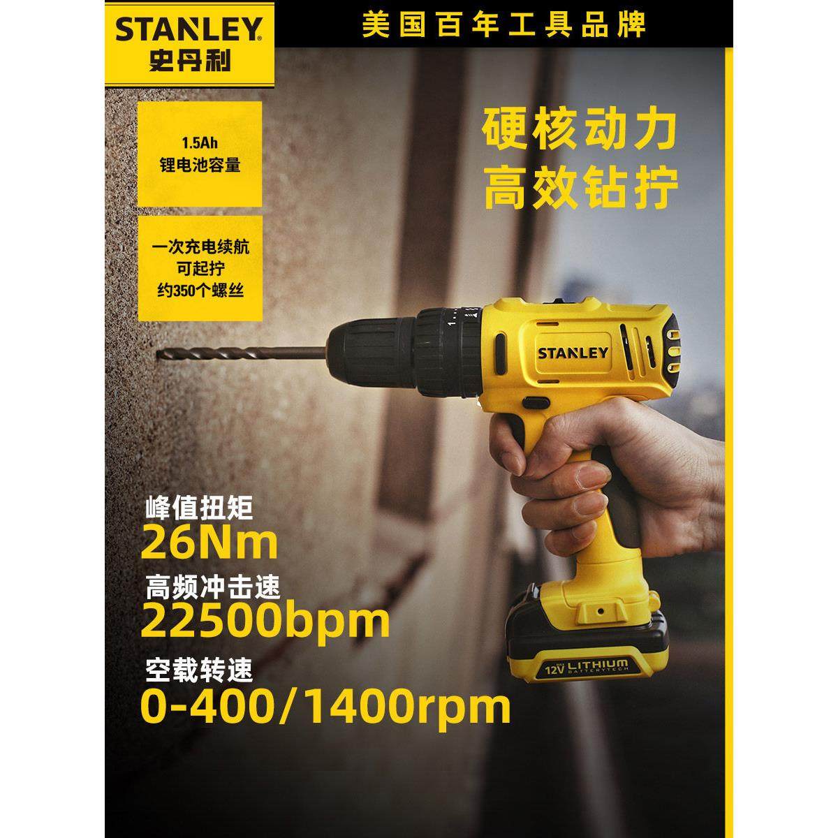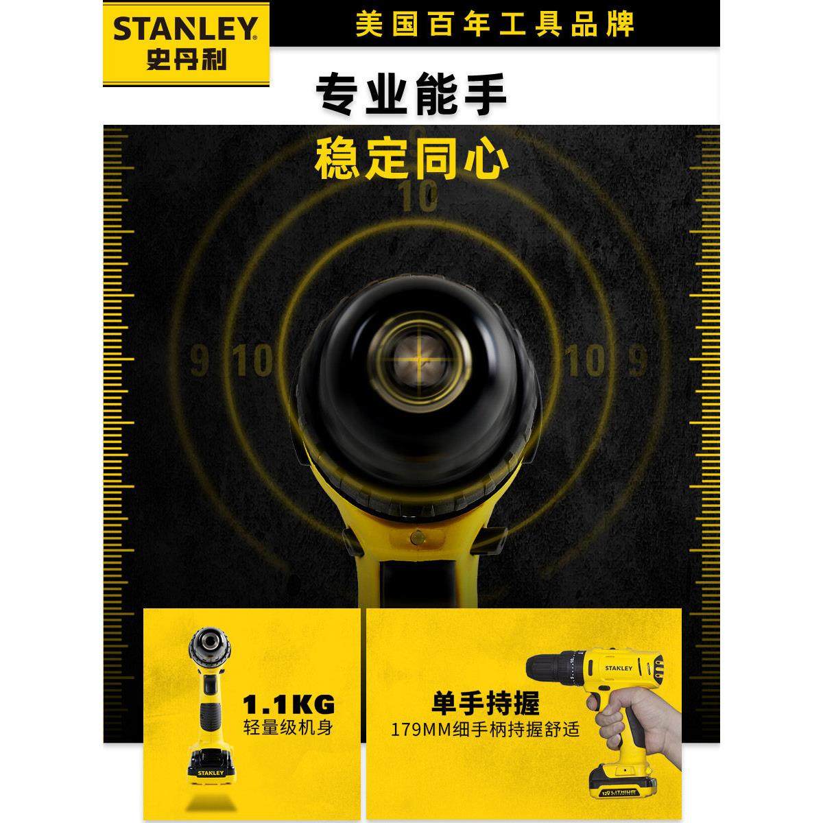 史丹利电钻锂电池家用小型手电钻电动螺丝刀工具套装手枪钻冲击钻