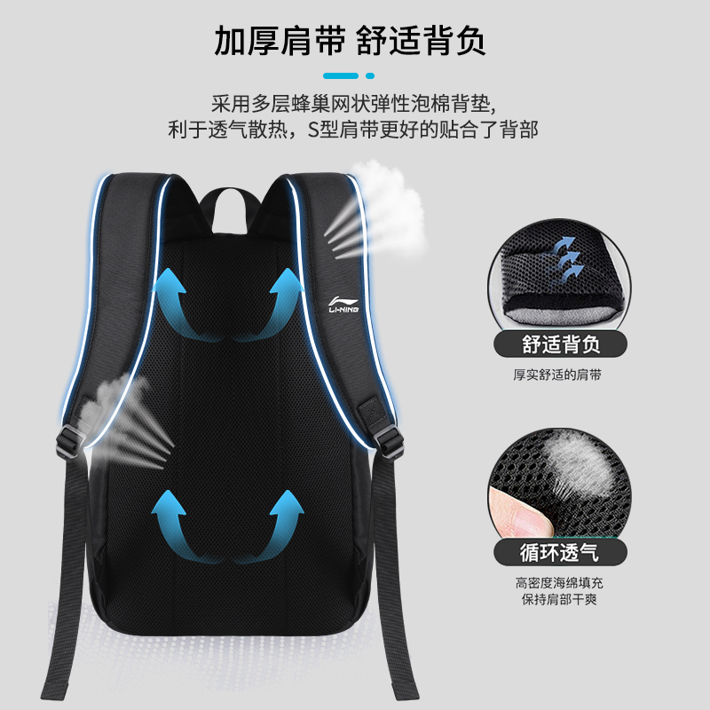 李宁双肩包新款男女初高中大学生书包运动通勤轻便大容量旅行背包