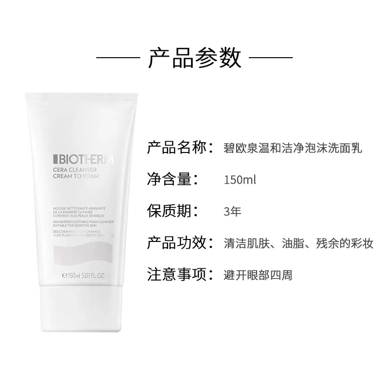 丹麦Biotherm/碧欧泉氨基酸男女士云朵泡沫洁面乳清洁保湿洗面奶