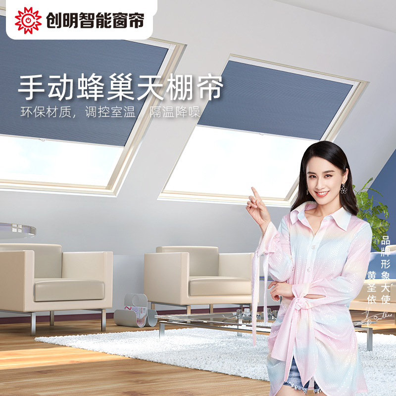 创明Wintom手动蜂巢天窗天棚帘阳光房遮阳顶帘玻璃房顶棚折叠隔热