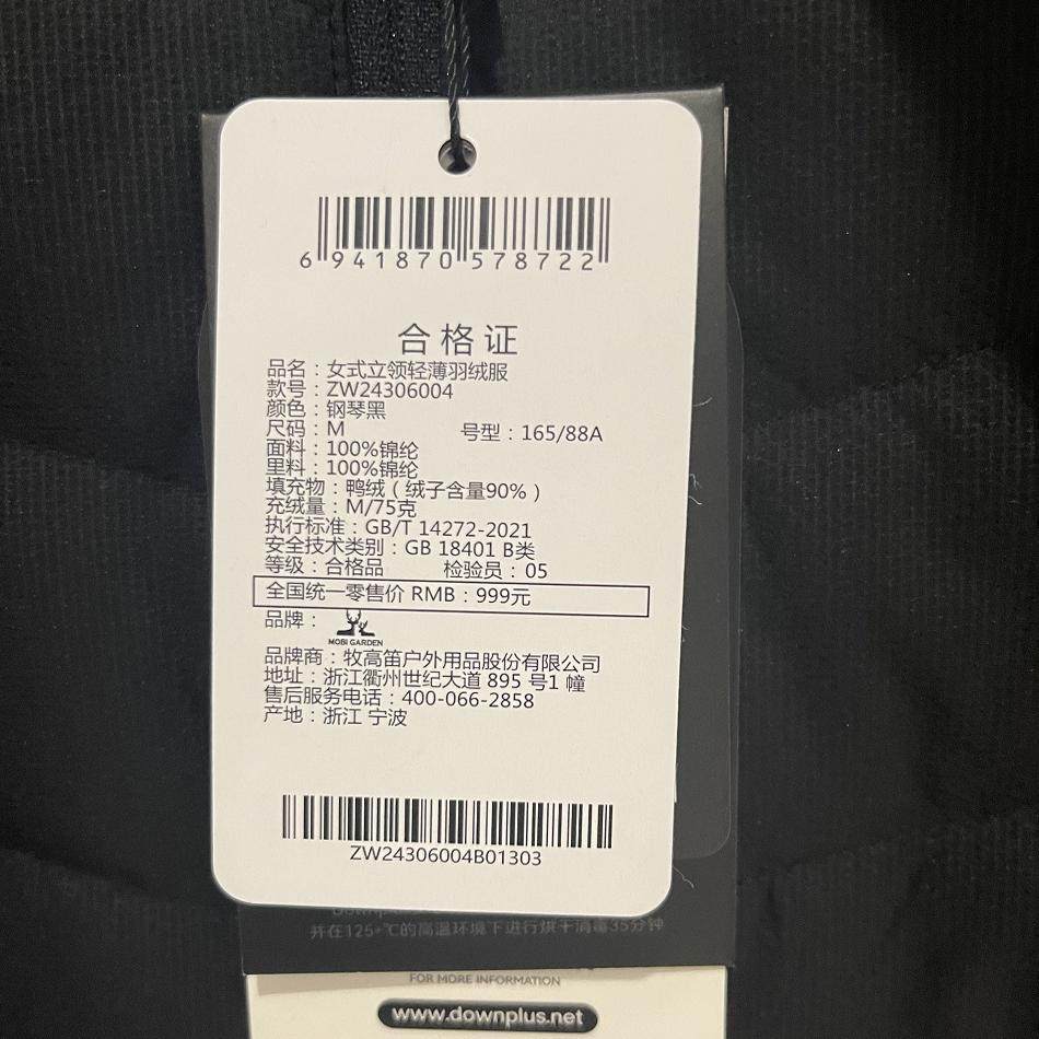 24初冬!女式立领防泼水无帽修身洋葱轻薄羽绒服牧高笛zw24306004