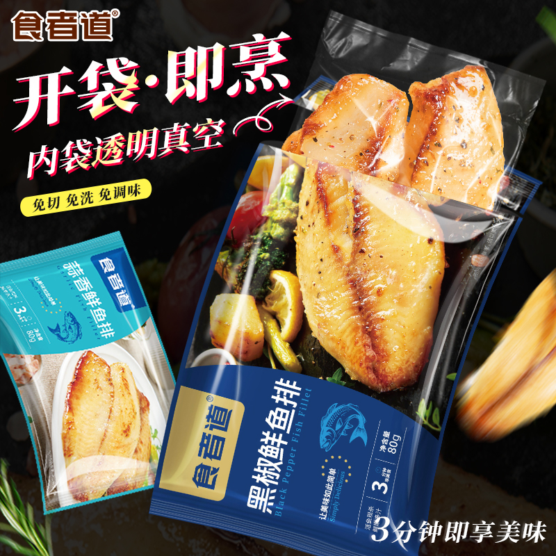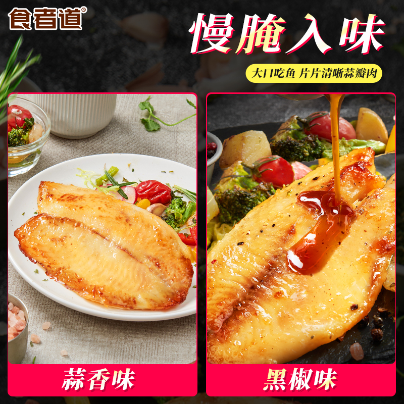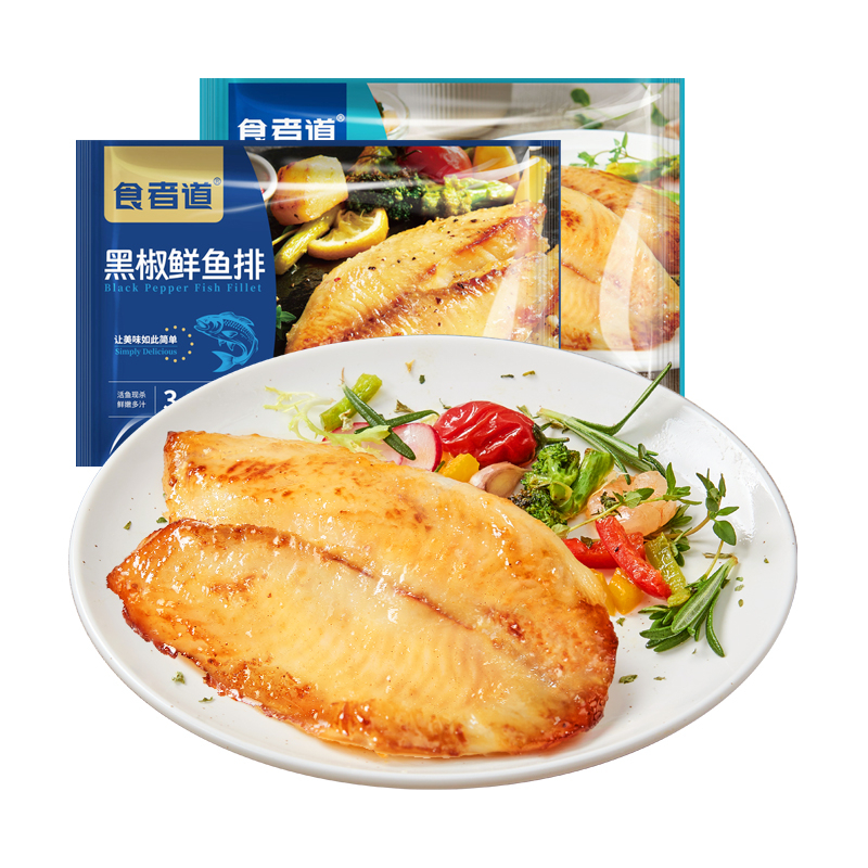 食者道黑椒鱼排鲷鱼排半成品去骨去刺低脂罗非鱼速食调味鲜鱼片