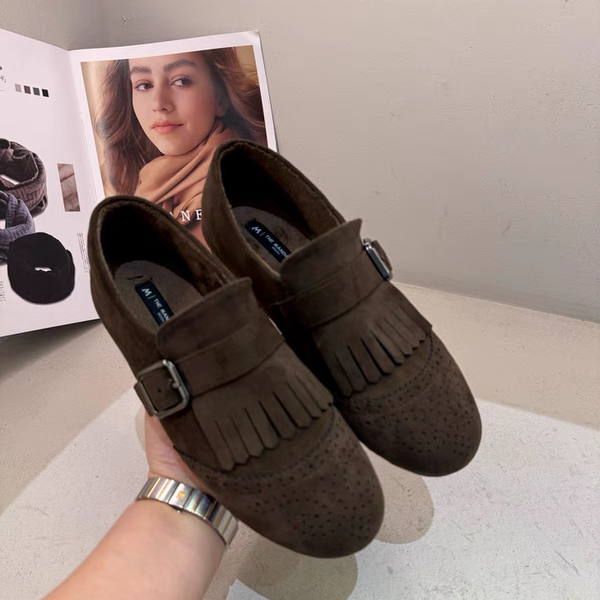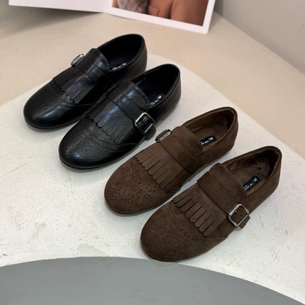 英伦风复古乐福鞋女2025新款冬加绒平底流苏一脚蹬软底棉鞋小皮鞋