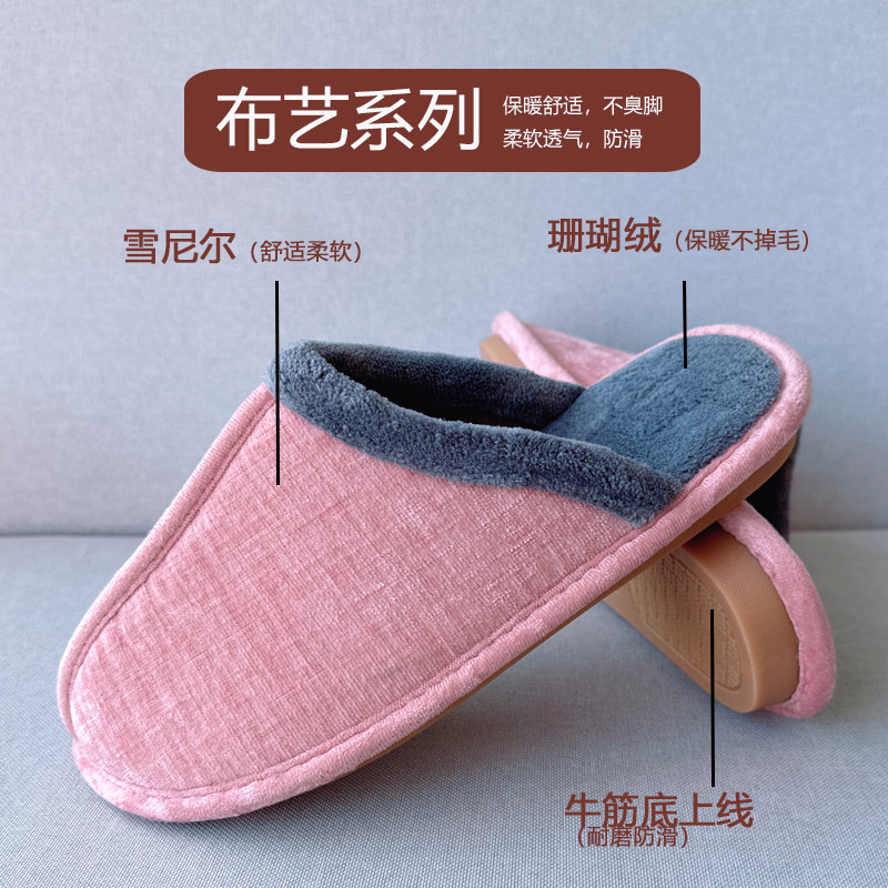 冬季老北京布艺包跟保暖棉拖鞋男女居家室内防滑软底静音贝壳鞋头