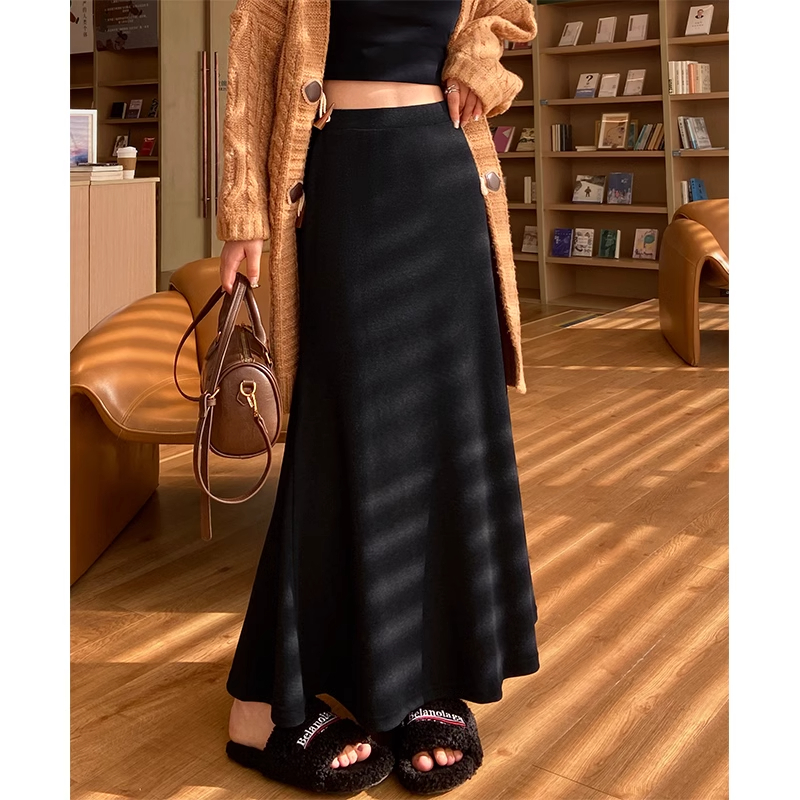 加厚黑色鱼尾裙女秋冬长裙百搭气质a字包臀显瘦羊绒半身裙中长款