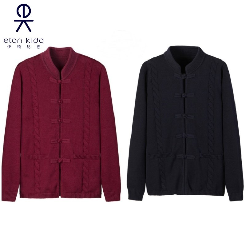 伊顿纪德校服学院男童女童中式立领绞花对襟开衫长袖毛衣15M017预