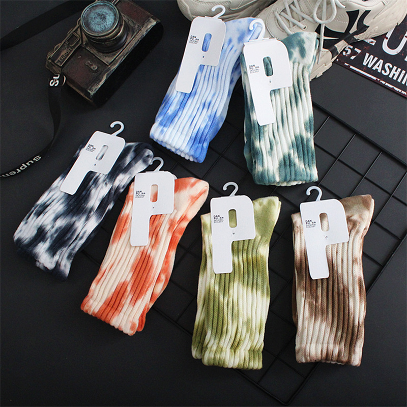 3双扎染袜子男秋冬季潮牌加厚毛巾底长筒纯棉运动吸汗防臭篮球袜