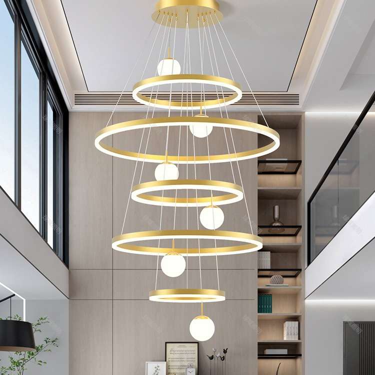 楼中楼客厅大吊灯现代简约挑空loft楼梯灯轻奢复式楼别墅挑高吊灯