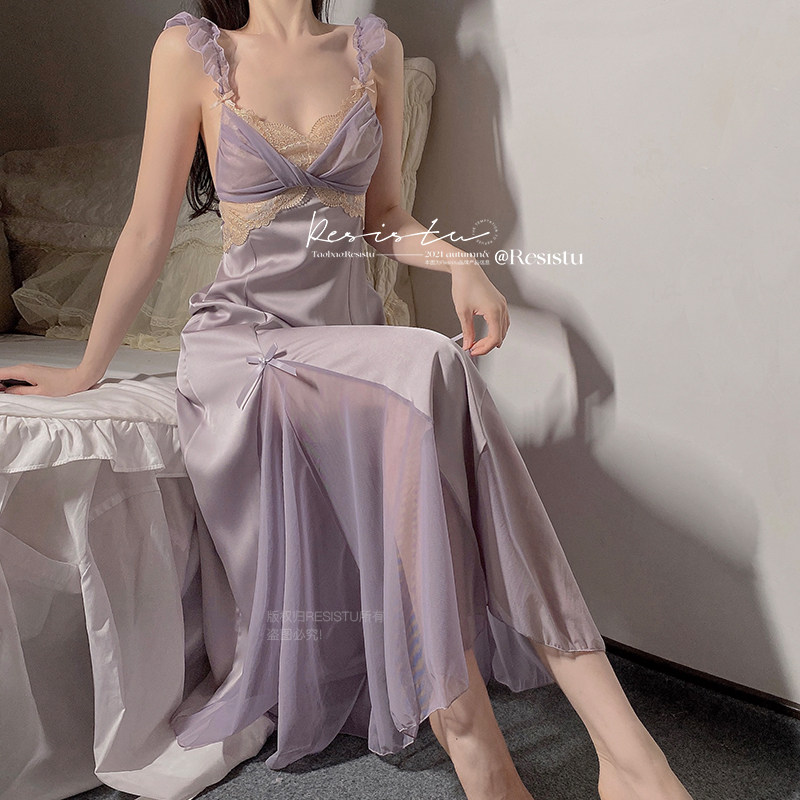 RESISTU魅惑紫鸢 性感睡衣女2022新款露背吊带睡裙网纱纯欲家居服