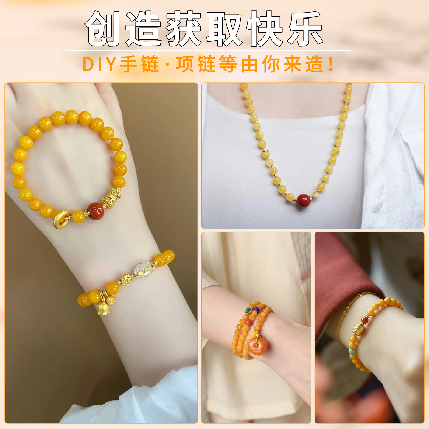 天然鸡油黄蜜蜡圆珠文玩隔珠编绳小配件珠子单珠配珠手链diy配件