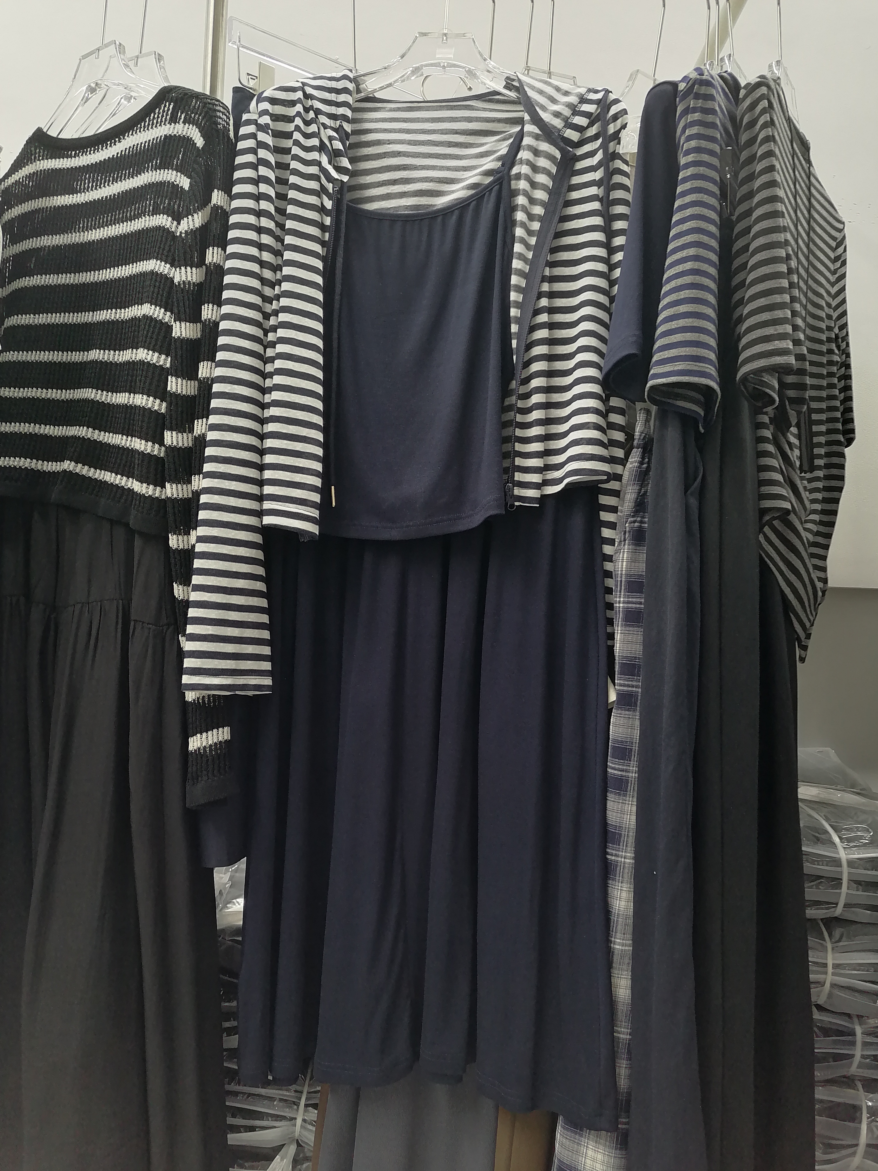 2025秋季韩系连衣裙套装长袖条纹连帽防晒外套+吊带+半身裙三件套
