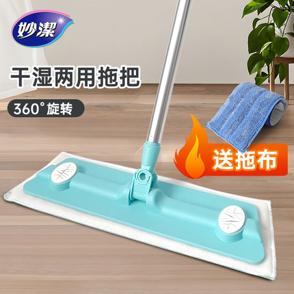 妙洁干湿两用木地板专用拖把第三代超细纤维360度旋转平拖送刮刀