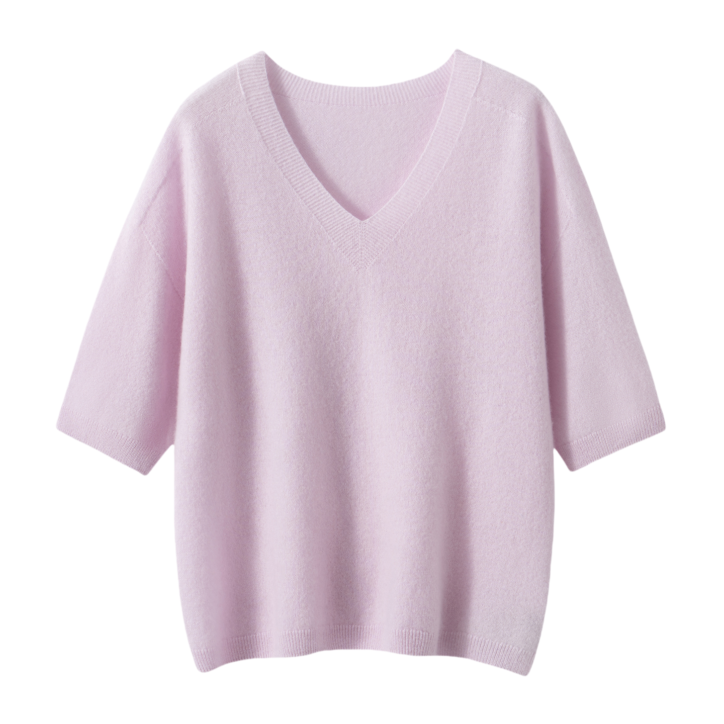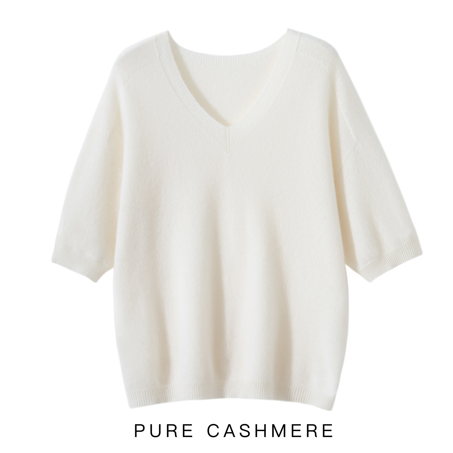 25新款秋冬100纯山羊绒女V领针织衫宽松短袖毛衣打底衫五分袖上衣