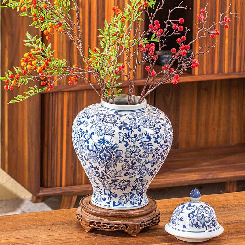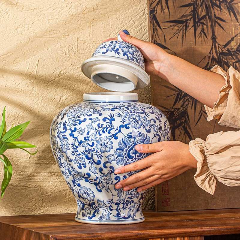 景德镇青花瓷圆柱罐高温釉下彩陶瓷圆柱罐装饰摆件可水培插花花瓶