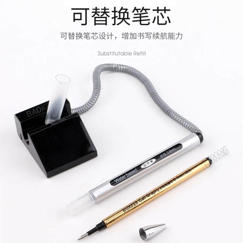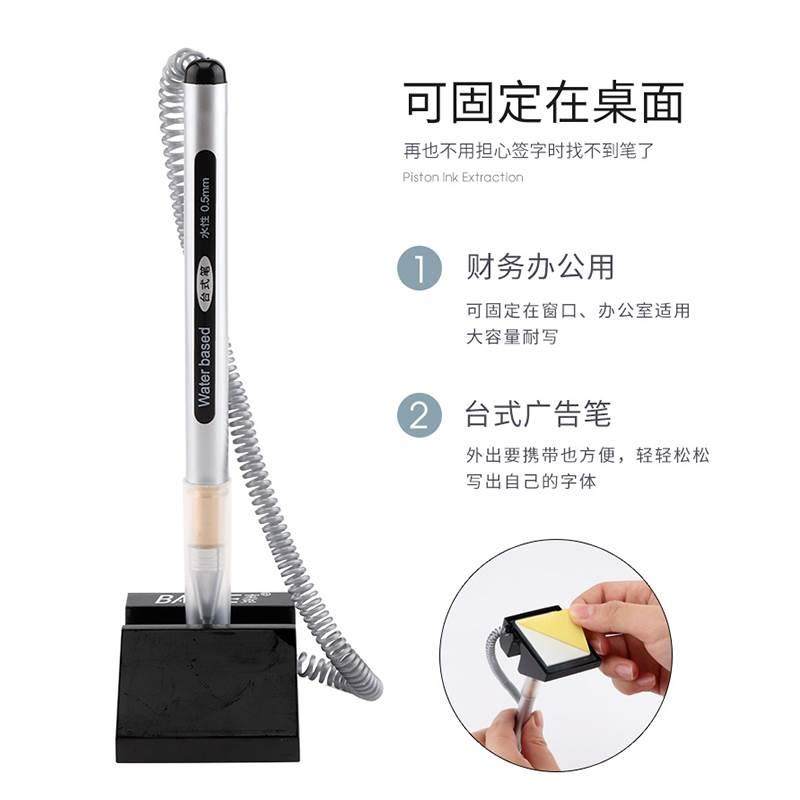 宝克650中性台笔拉线笔电话笔银行柜台办公桌面防丢笔台式笔文具前台碳素笔粘桌黑色商务签字笔办公文具