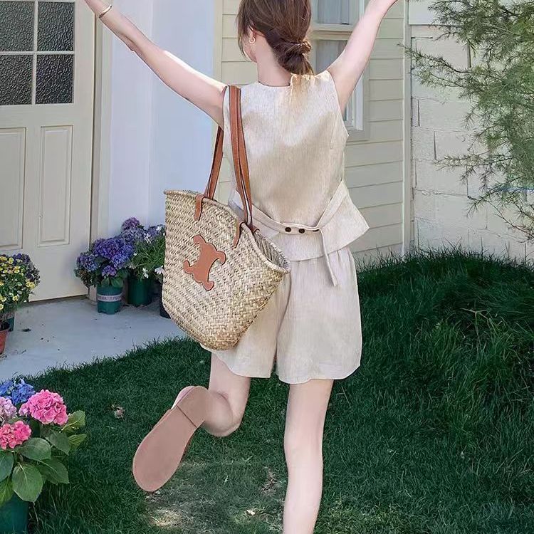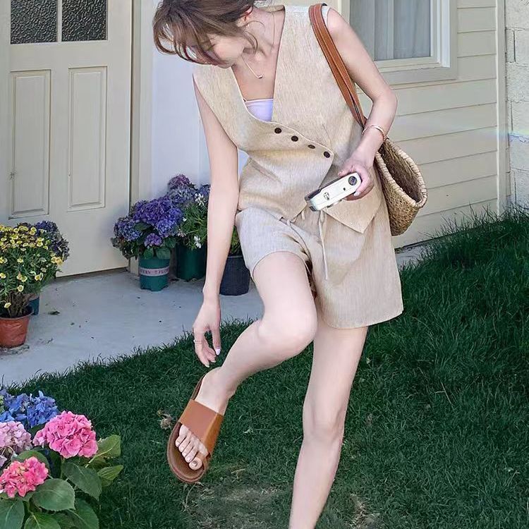 亚麻马甲夏季短裤套装两件套时尚休闲2025新款无袖西装