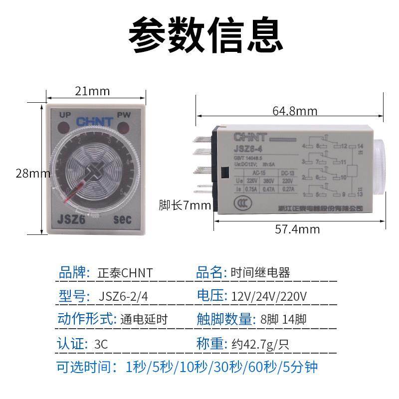 H3Y正泰JSZ6-4/2通电延时1小型时间继电器12V伏24V220V交流5秒M60