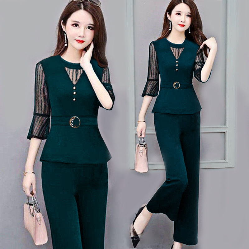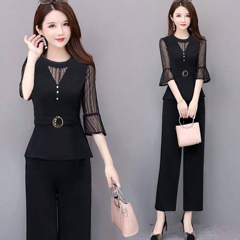 单/套装2024春夏短袖时尚阔腿裤两件套女韩版宽松显瘦气质小个子