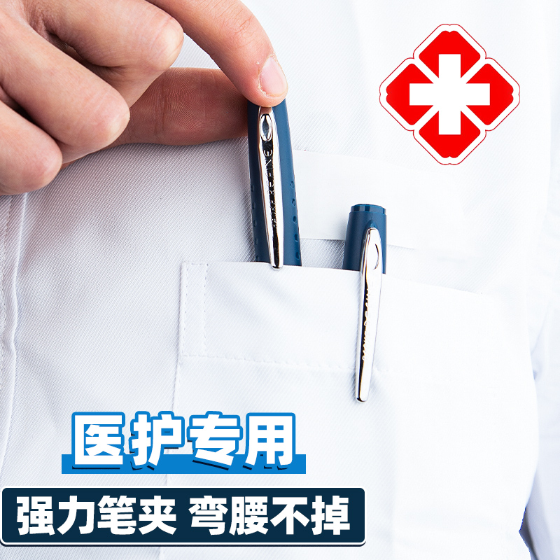 宝克PC988蓝黑色针管头大容量中性笔签字笔0.5mm拔帽式医生处方笔水笔墨蓝色笔碳素笔医院用笔广告定制logo