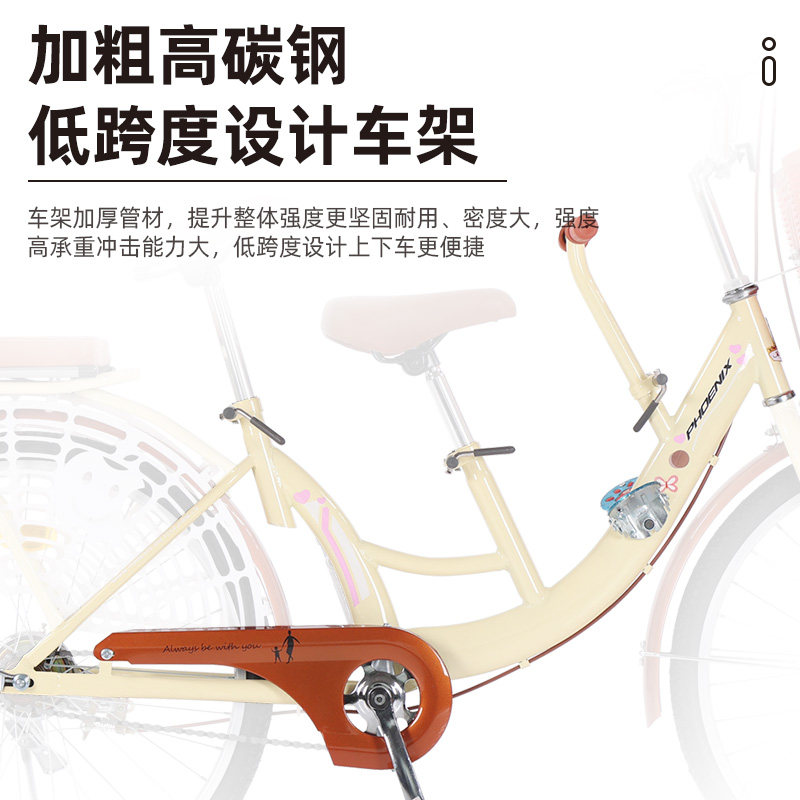 凤凰牌亲子车自行车女男士带小孩母子车三人车可带娃接送孩子