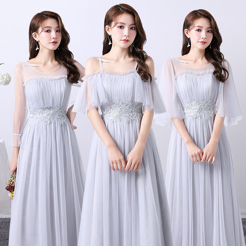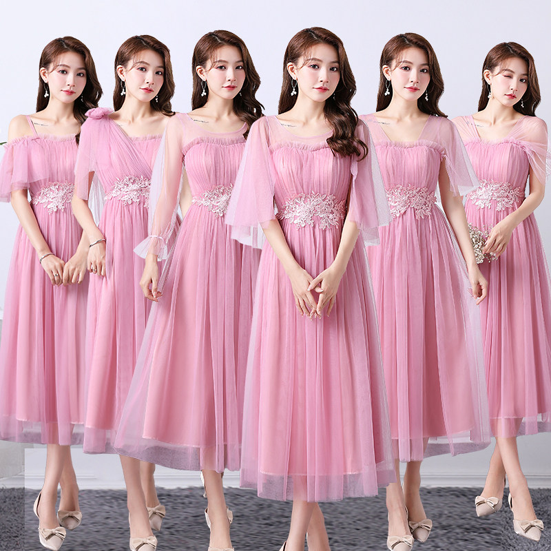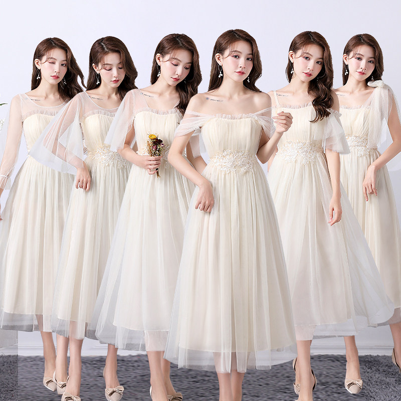 伴娘服2025新款香槟色修身显瘦仙气质姐妹团中长款合唱演出礼服裙