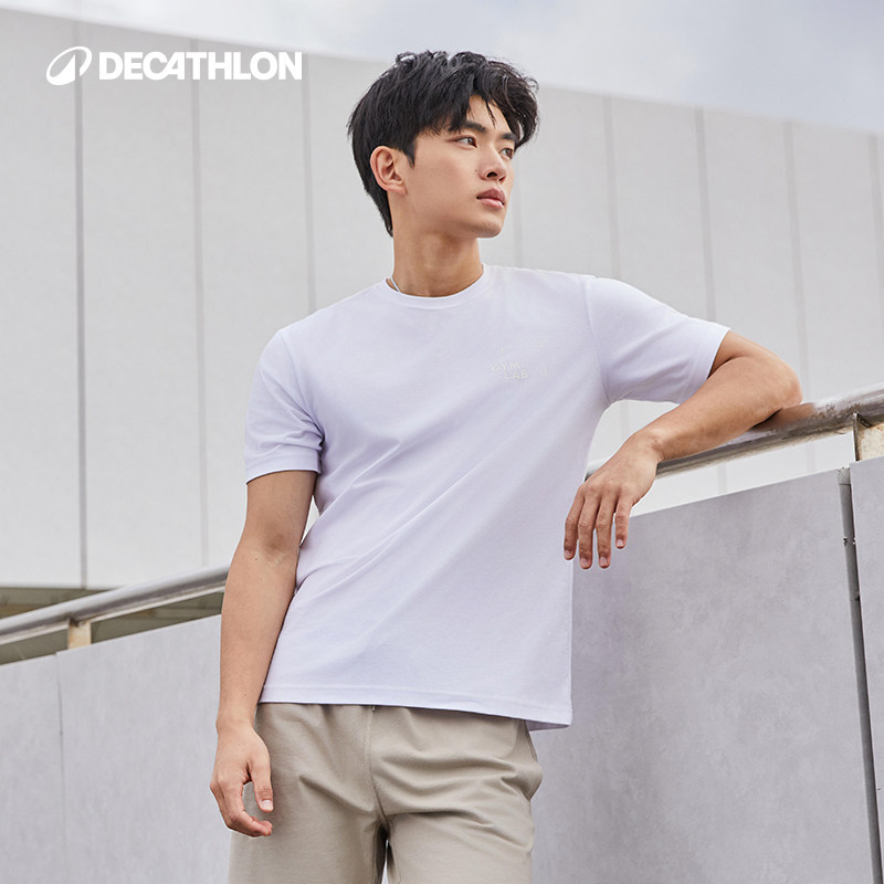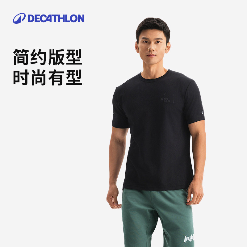 【凉感】迪卡侬夏季新款短袖t恤纯色打底衫男休闲圆领上衣SAT3