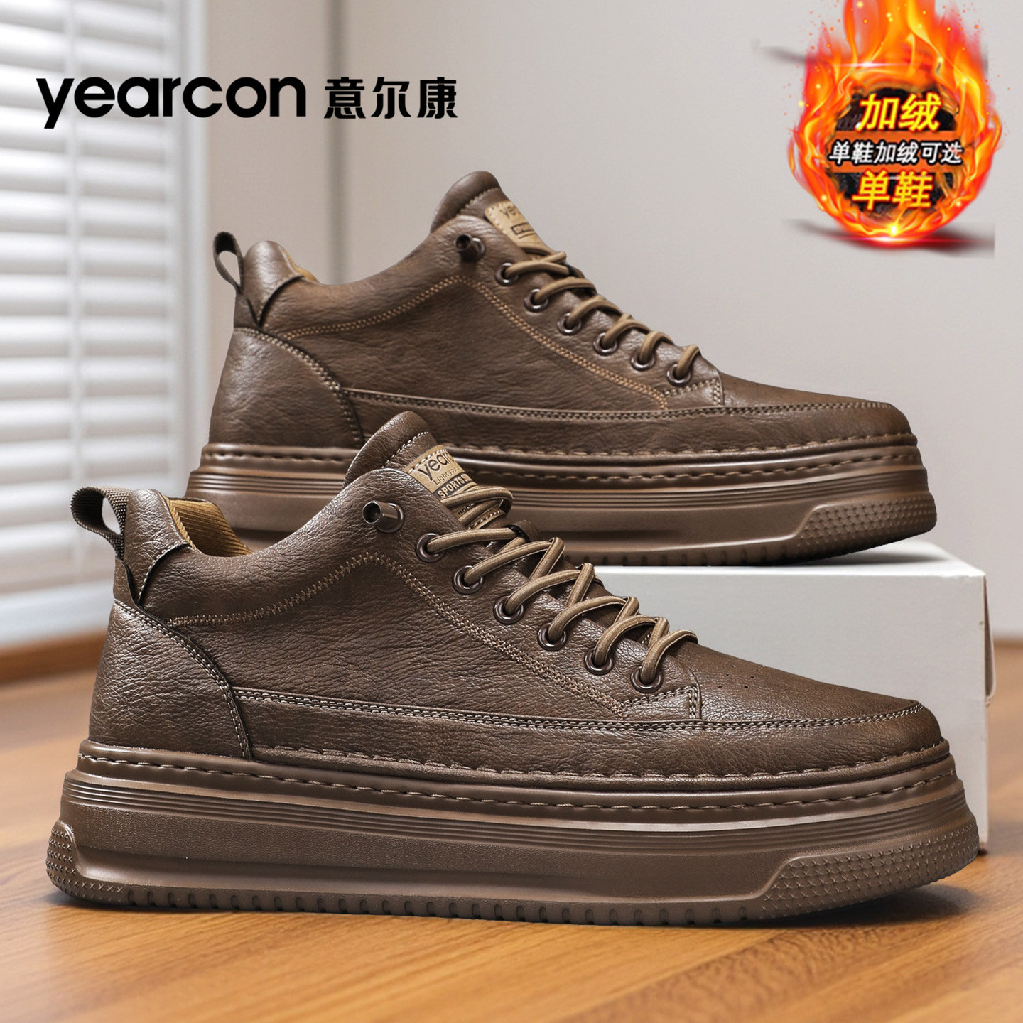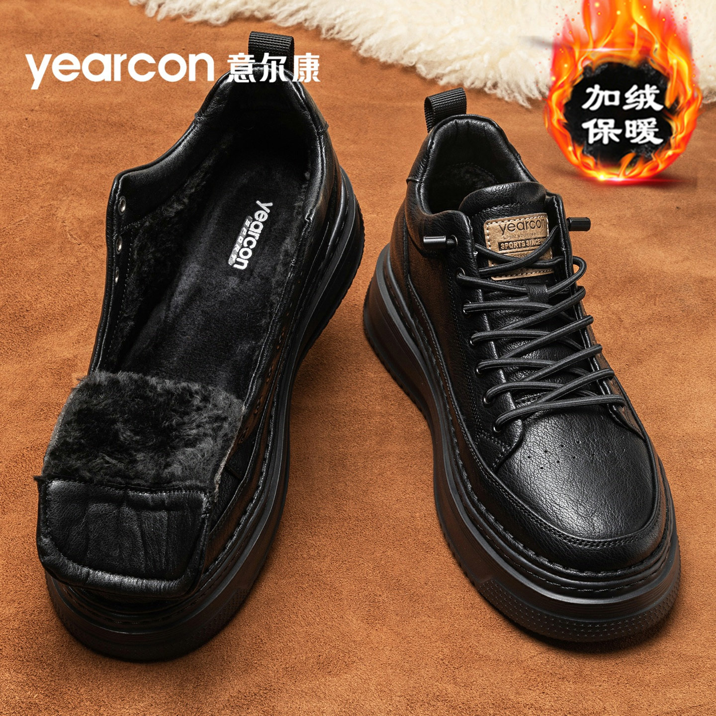 意尔康男鞋2025新款秋冬季加绒棉鞋百搭厚底增高男士中帮休闲板鞋