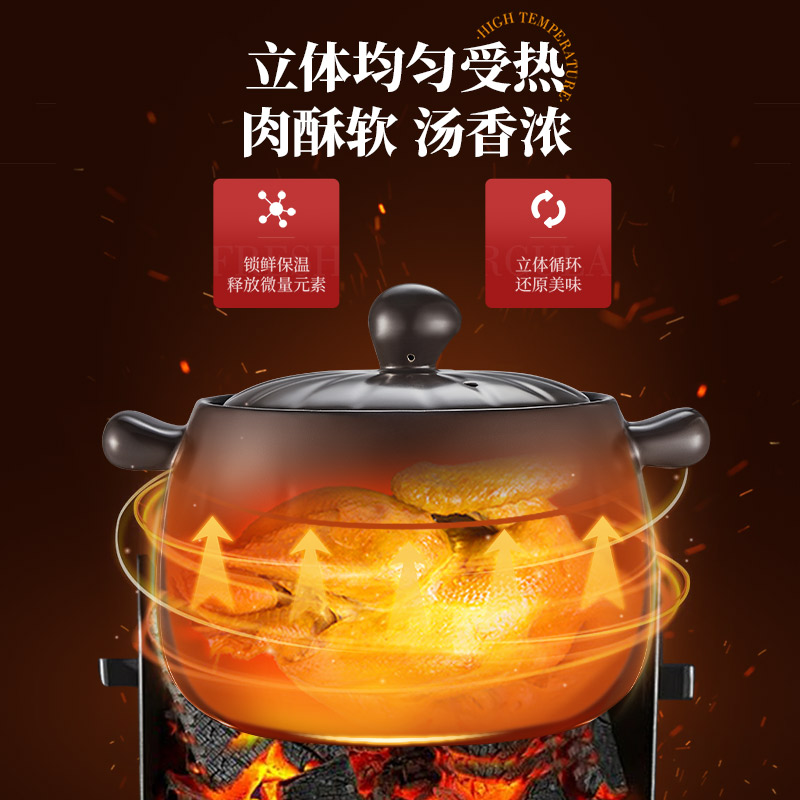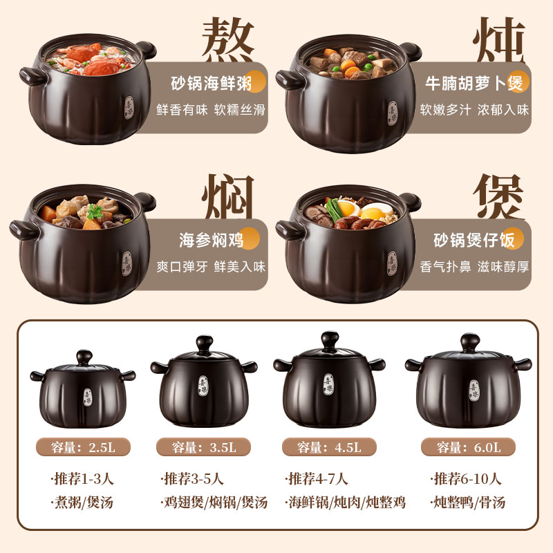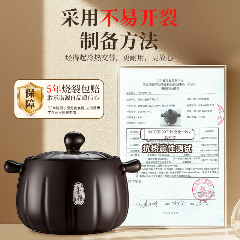 爱仕达砂锅家用燃气炖锅陶瓷煲炖汤锅耐高温干烧不裂专用炖肉汤锅