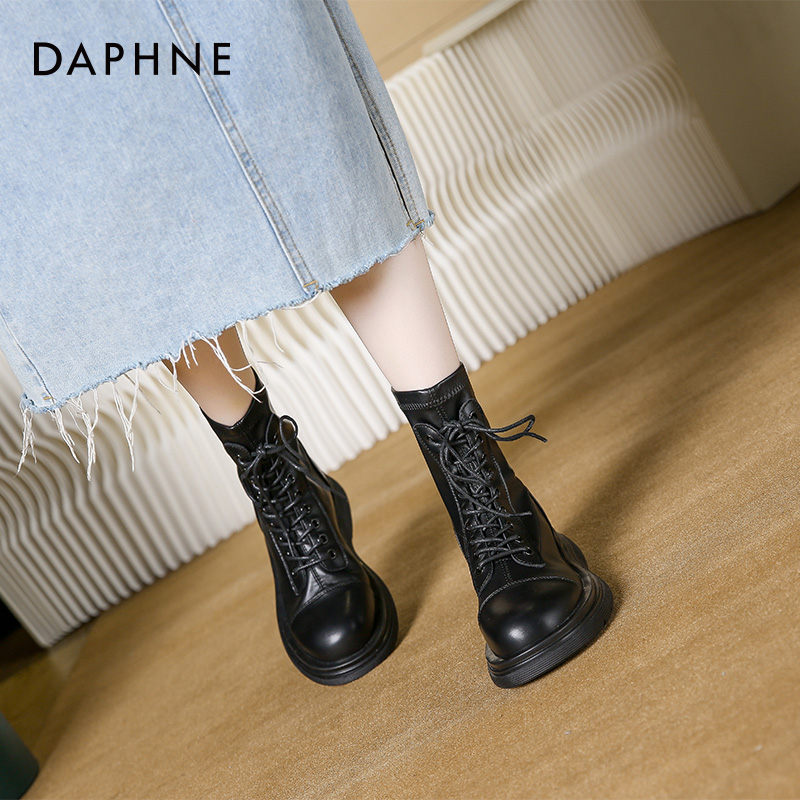达芙妮马丁靴2024新款女靴鞋子女冬百搭英伦风皮靴厚底黑色短靴女