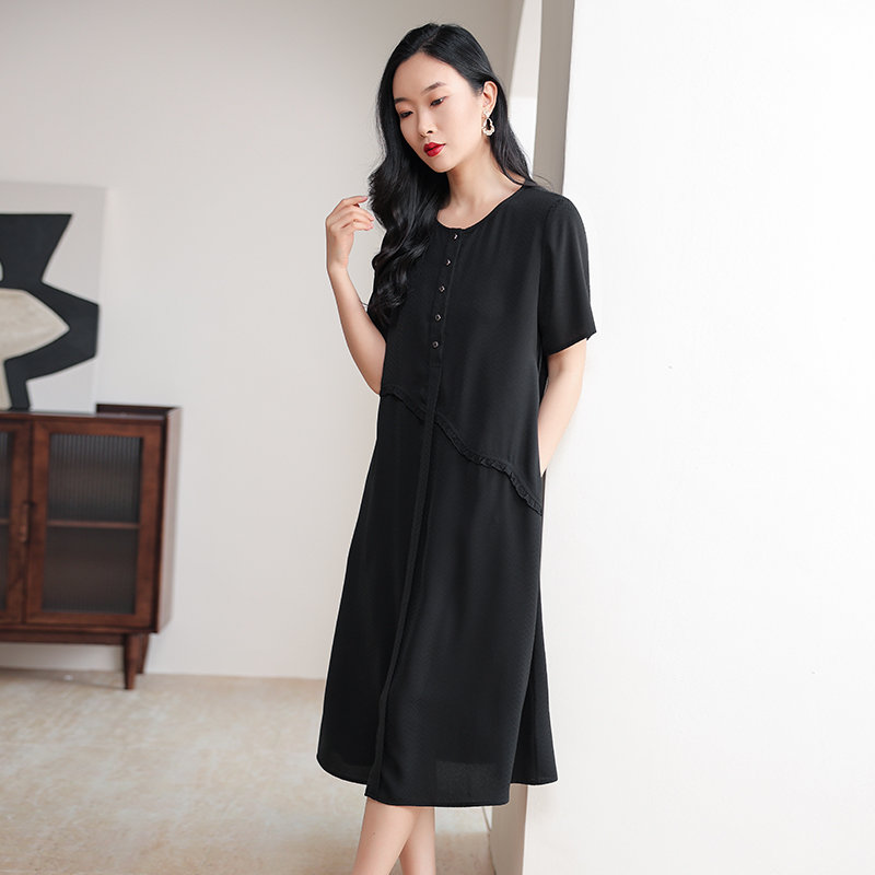 大码女装2025年夏季新款宽松直筒休闲裙胖妹妹遮肚显瘦衬衫连衣裙