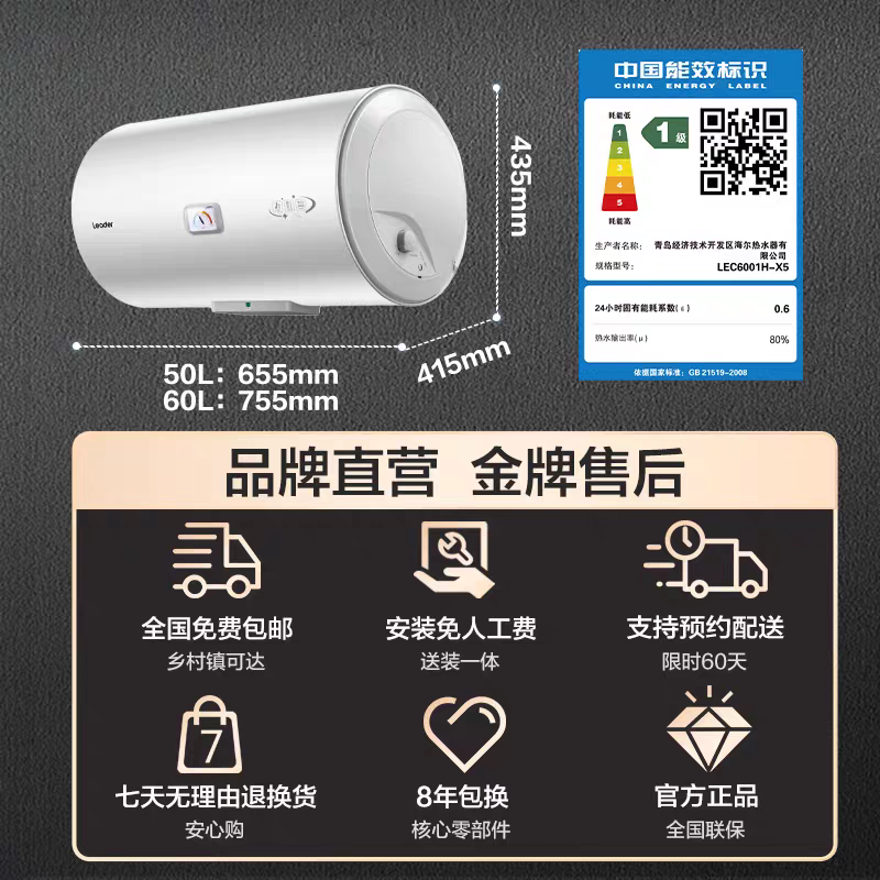 Haier/统帅 LEC6001H-X5 一级能效60升速热家用电热水器40L50升X5