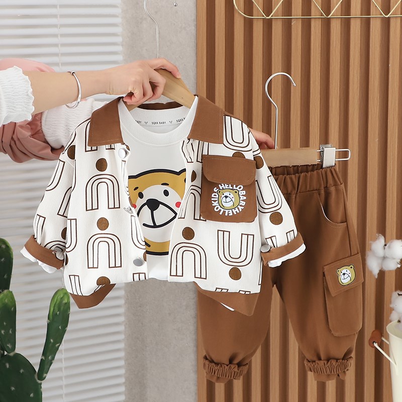 男童春装套装2024新款时髦洋气潮童装三件套1一3-5岁宝宝春秋衣服