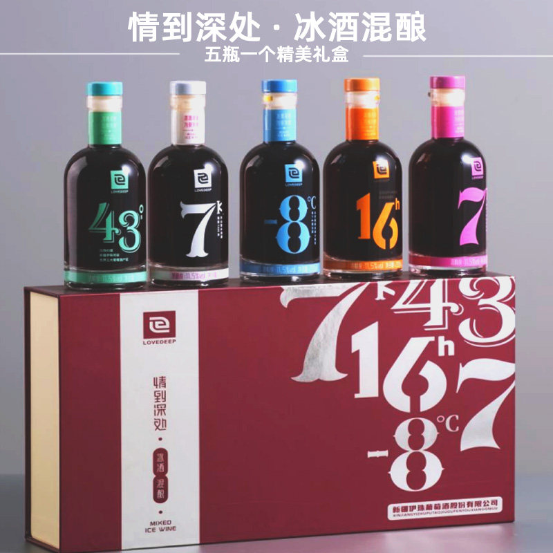 新疆伊珠情到深处冰酒混酿冰葡萄酒干红红酒11.5°礼盒装200ml*5