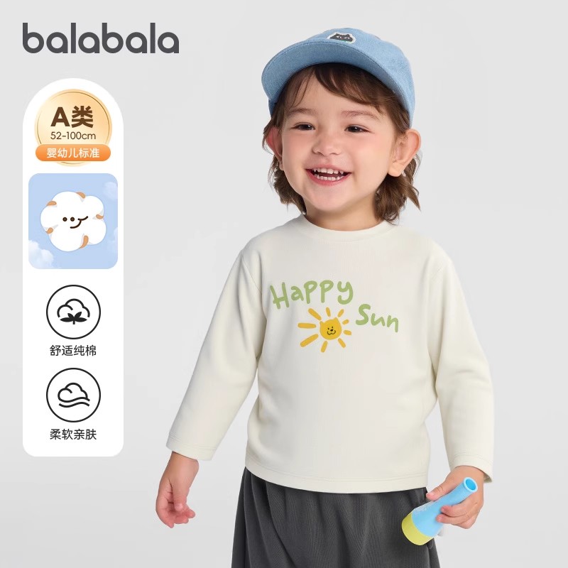 巴拉巴拉儿童t恤纯棉打底衫女童男童秋装2025新款圆领长袖上衣