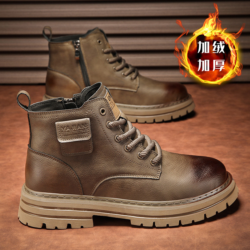 脚王KFT男鞋新款高帮马丁靴男士鞋真皮工装靴中邦休闲鞋皮鞋棉鞋