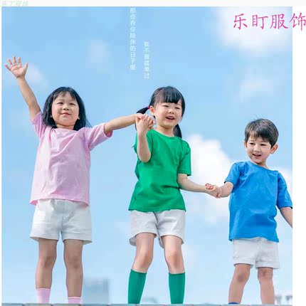夏季糖果彩色儿童纯棉短袖t恤小学生纯色毕业照班服幼儿园亲子装