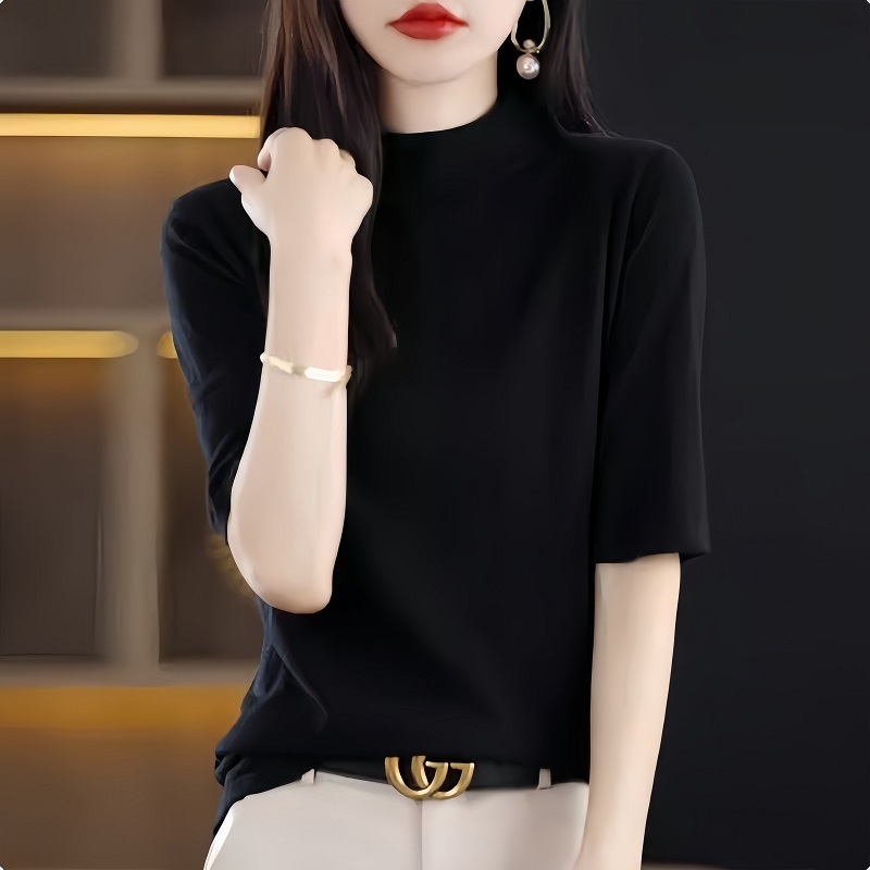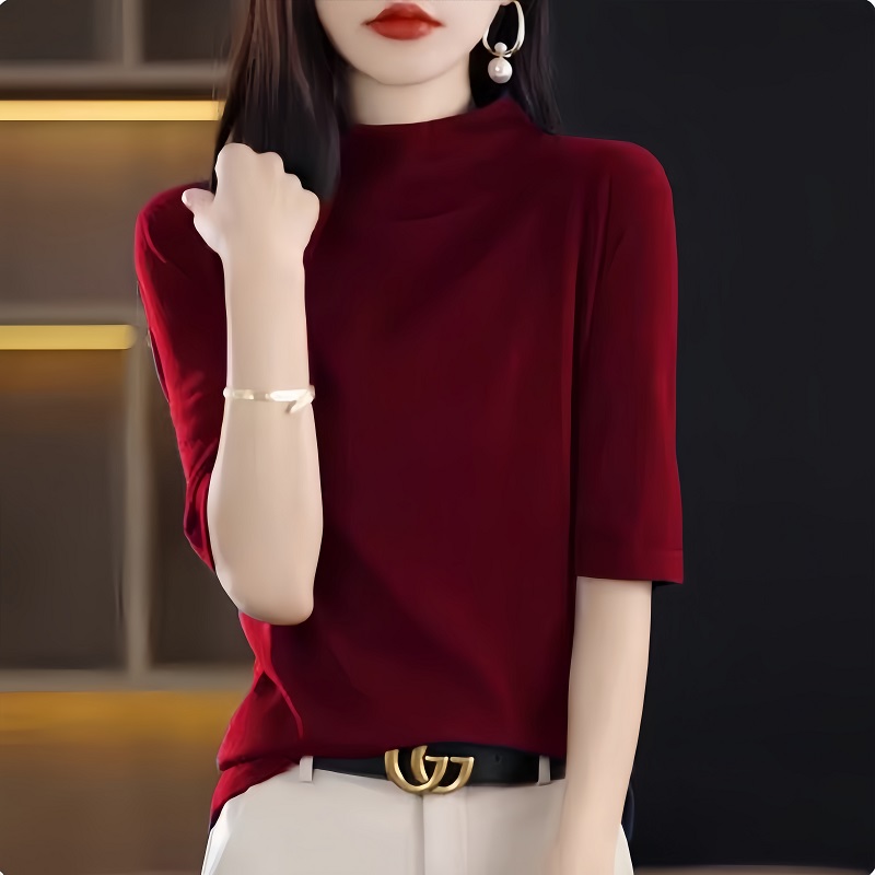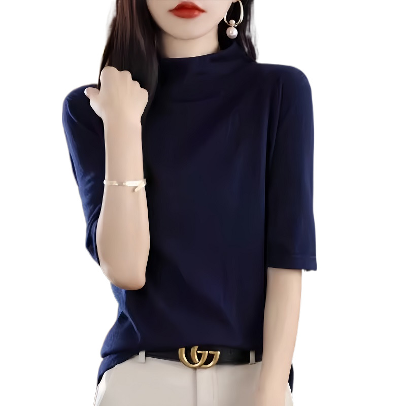 半高领内搭t恤女中袖针织打底衫秋冬五分袖紧身上衣气质毛衣白色