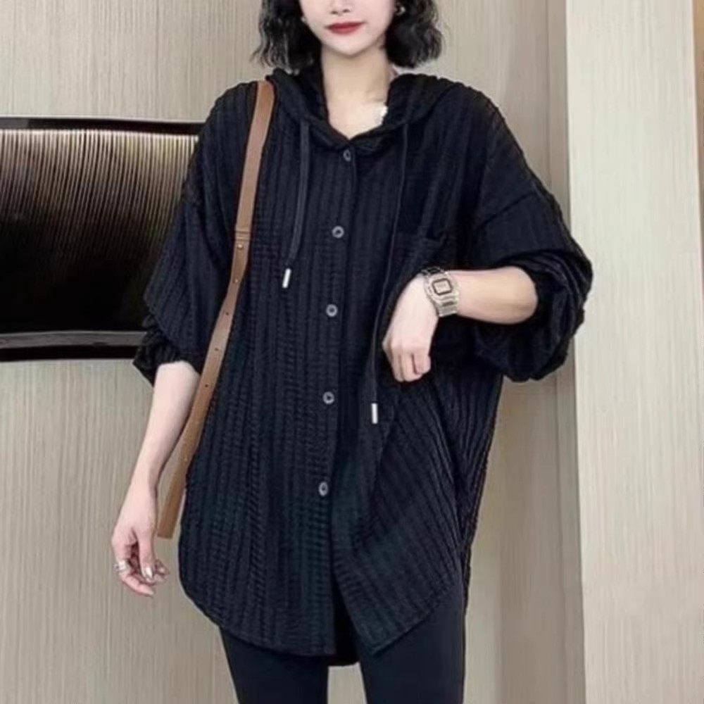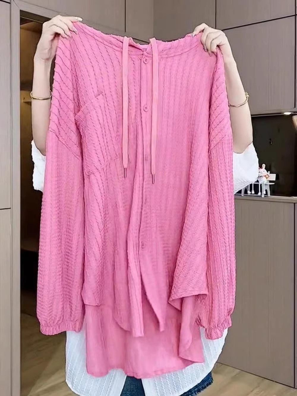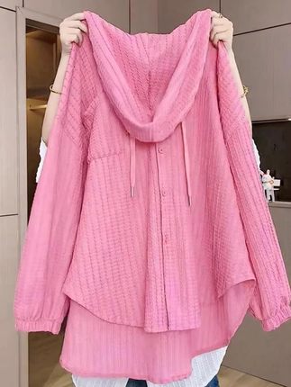 大码空调衫粉色长袖防晒衣女胖妹百搭中长款宽松连帽开衫薄款外套