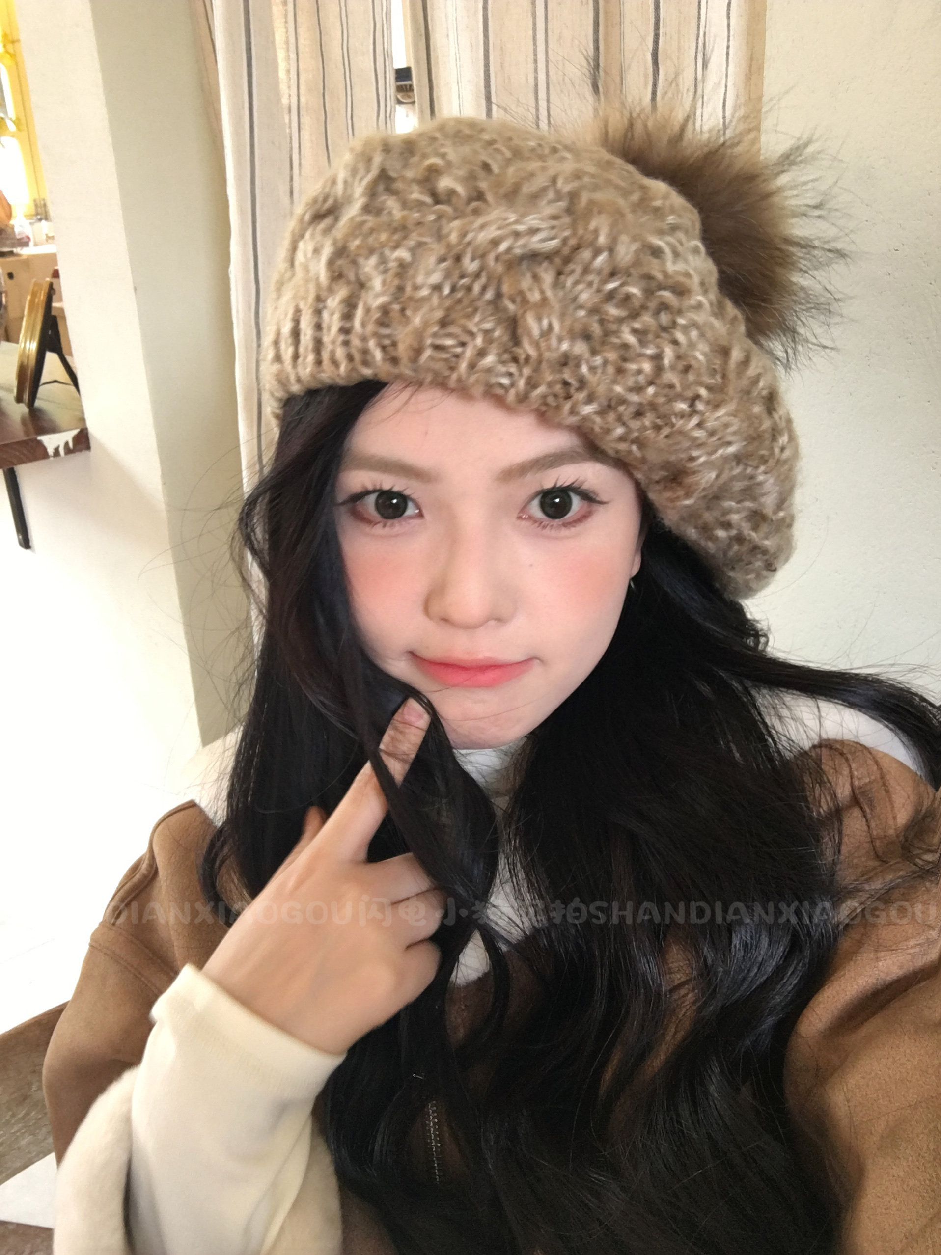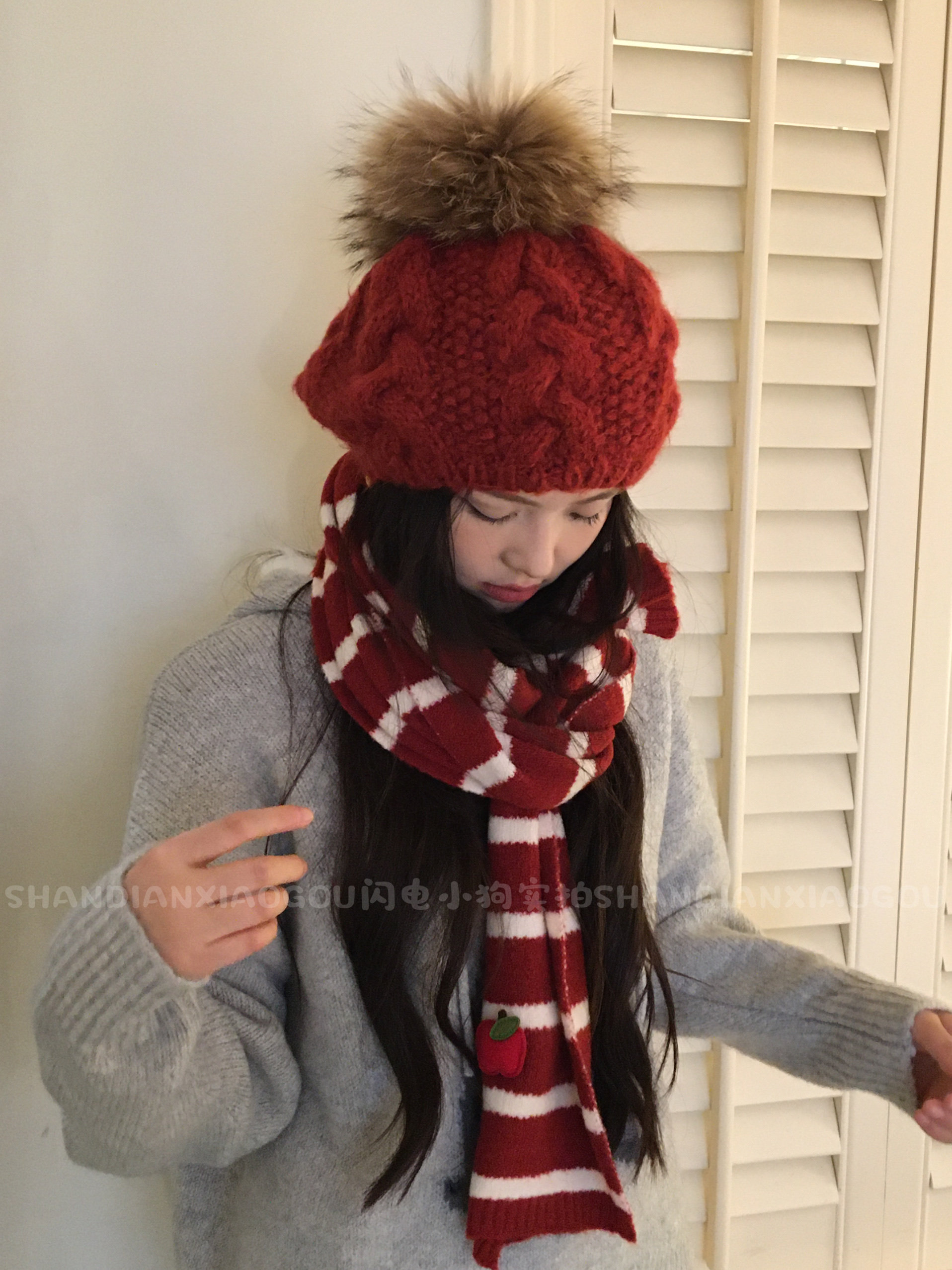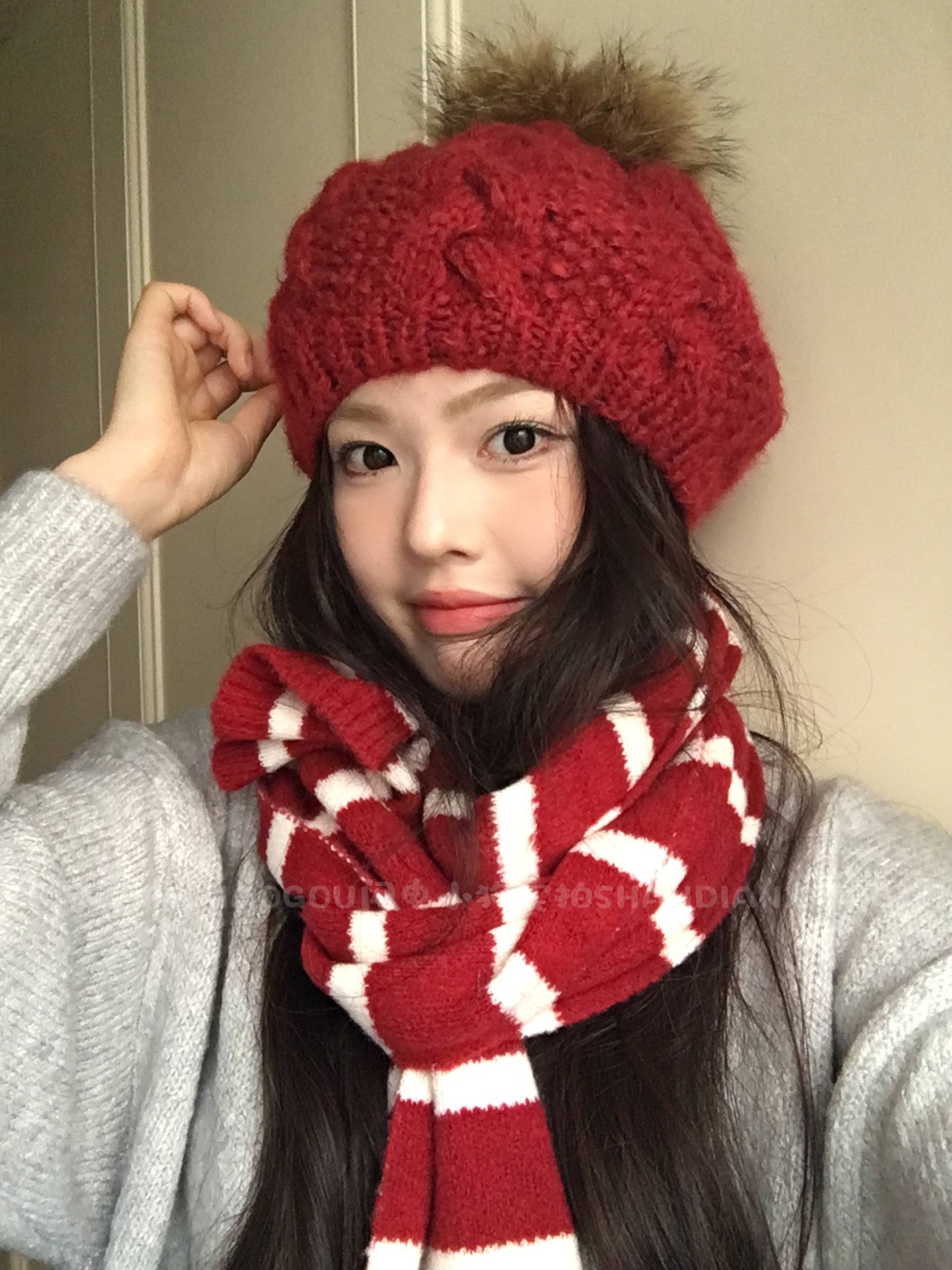 红色冬季战神*贝雷帽毛球麻花针织毛线帽子女秋冬过年红色画家帽