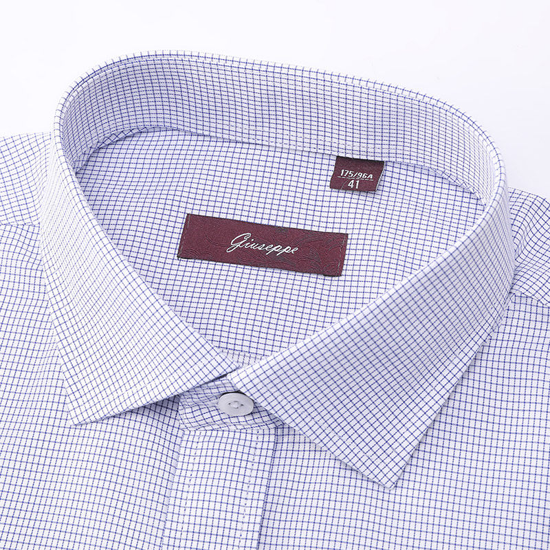 【免烫】乔治白春秋男士长袖衬衫商务纯棉衬衣格子修身温莎领上衣