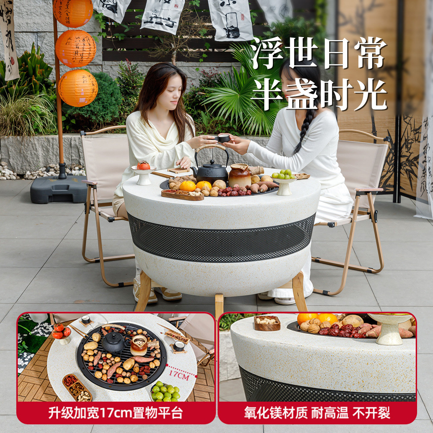 户外烤火炉庭院围炉煮茶桌家用室内取暖烧炭盆器具聚餐烧烤炉套装