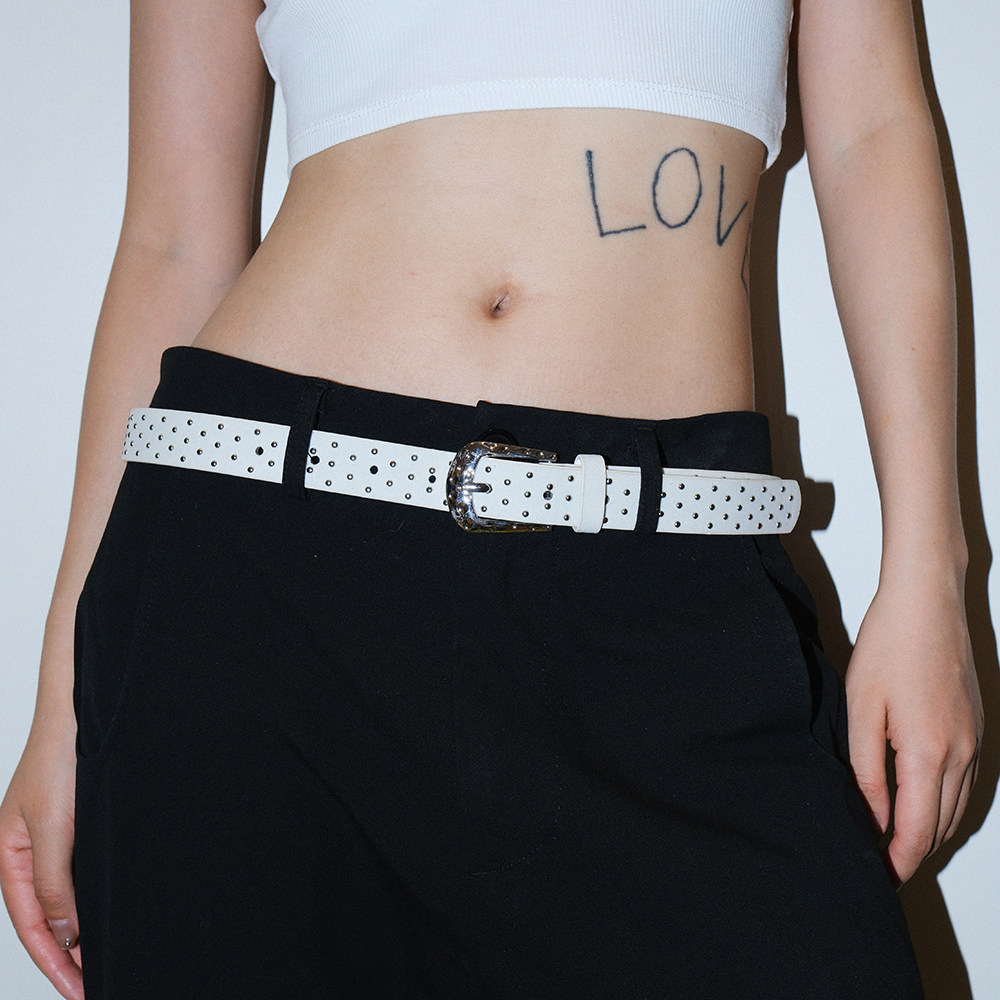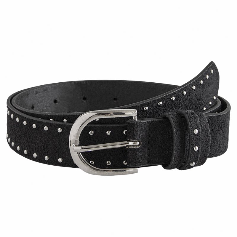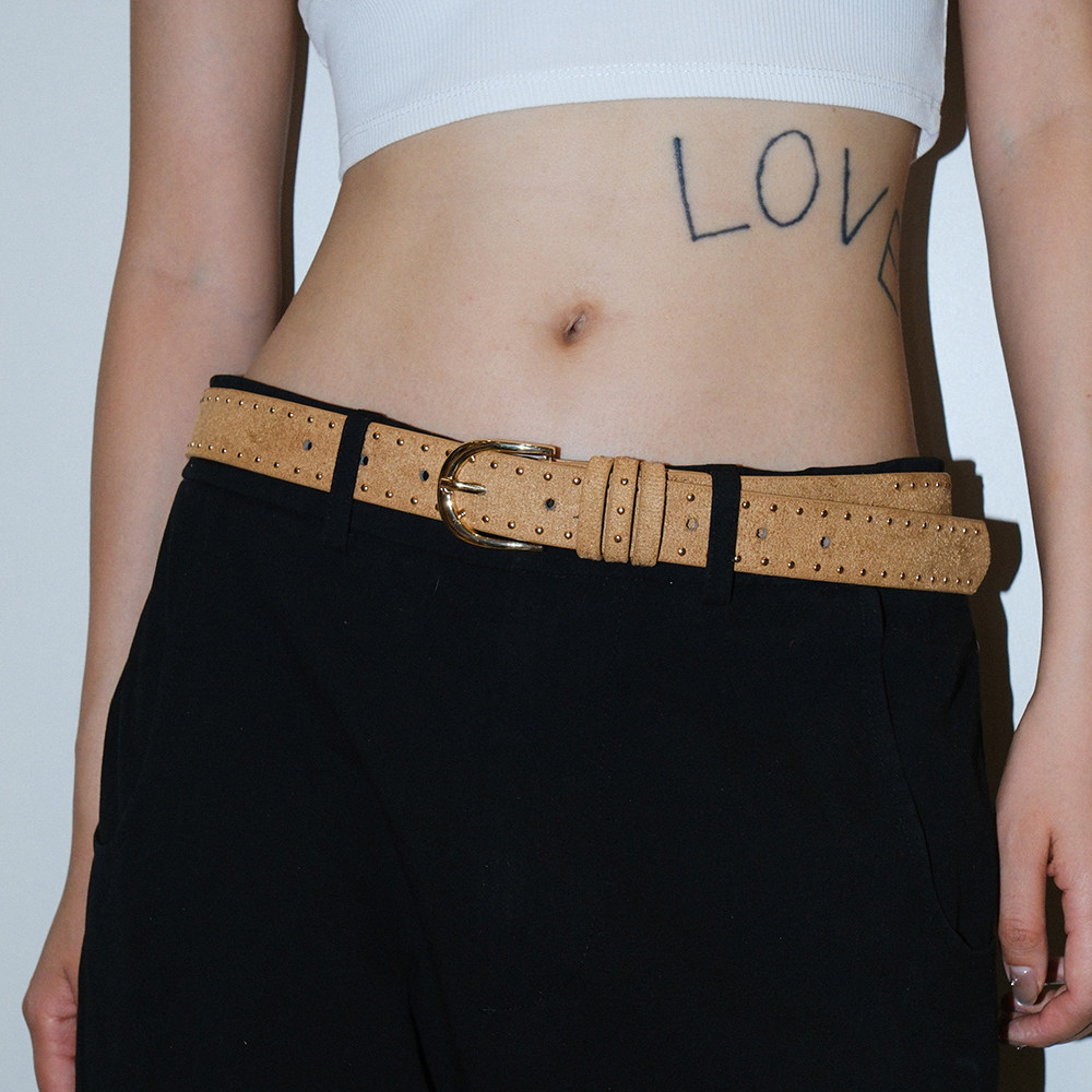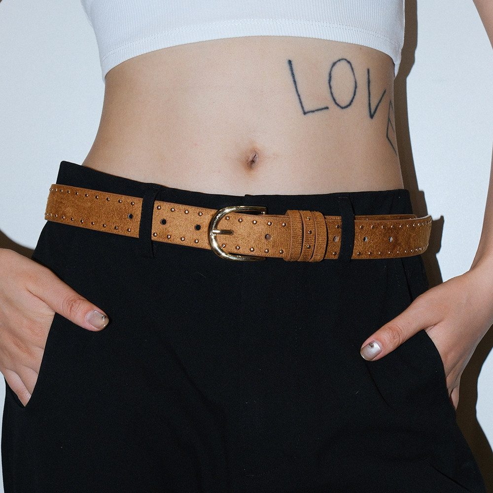 Darkblue丝绒铆钉腰带辣妹配牛仔裤y2k翻毛针扣简约短窄款皮带夏