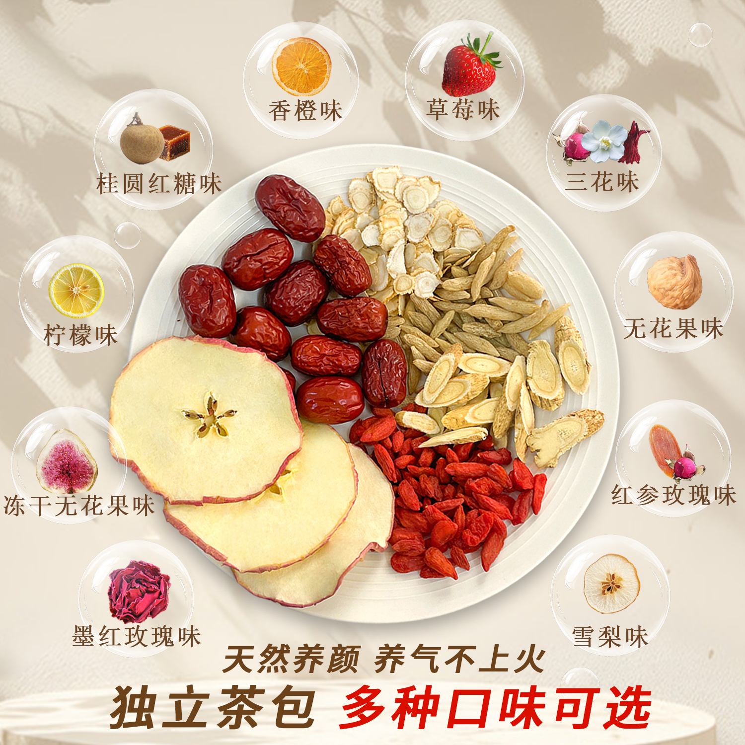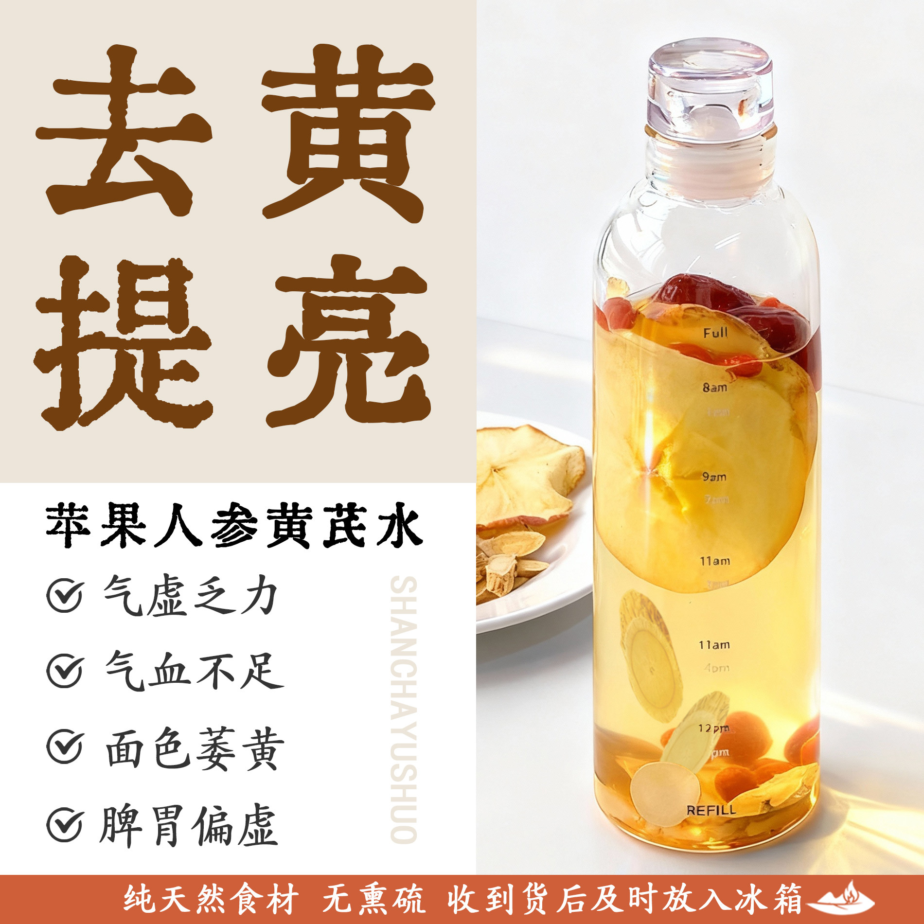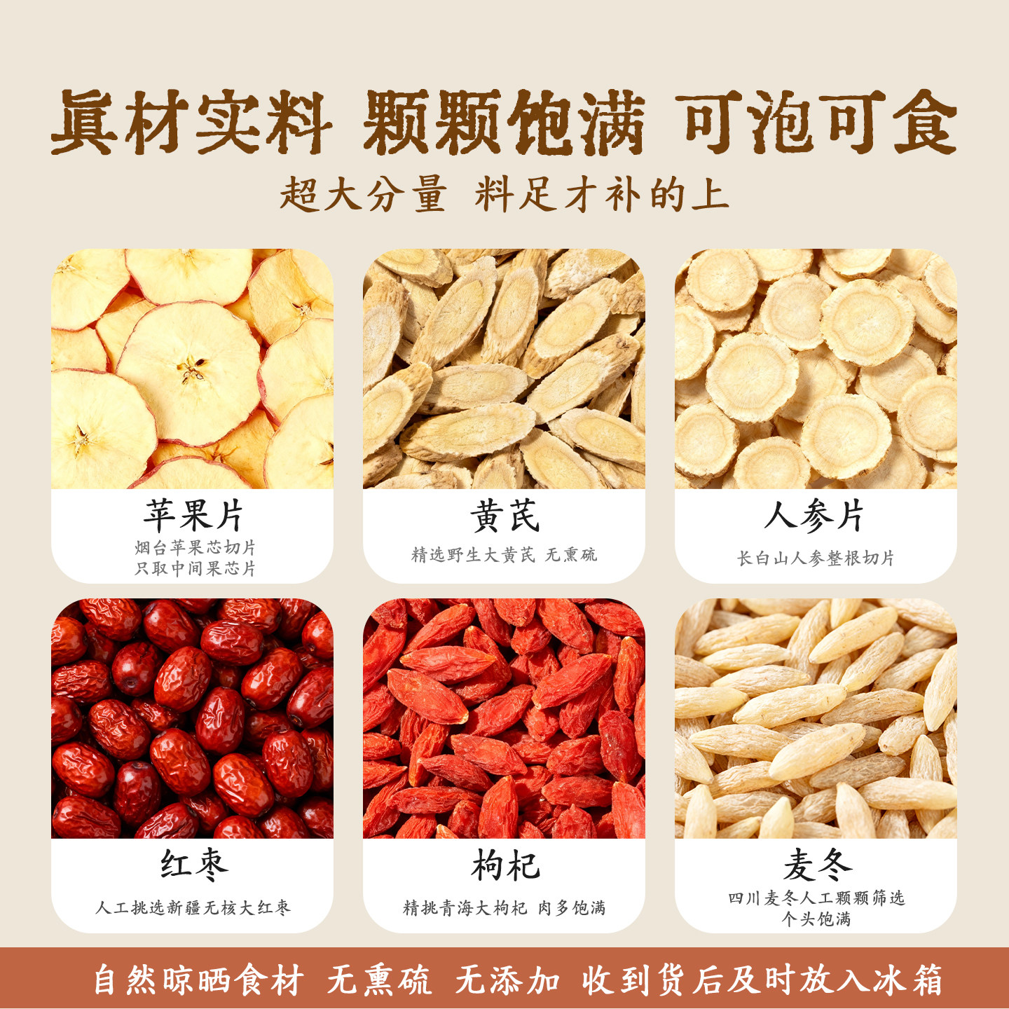 山茶与烁人参枸杞补气血苹果红枣黄芪水养素颜女人暗黄水果养生茶