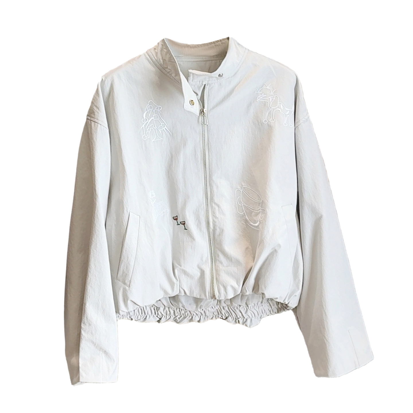 咖色时尚刺绣立领短款风衣外套女2025秋冬季收腰宽松显瘦夹克