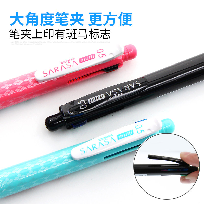 日本zebra斑马J4SA11多功能四色笔+自动铅笔0.5mm学生做笔记手帐多色中性笔三色五合一水笔红蓝黑官方旗舰店