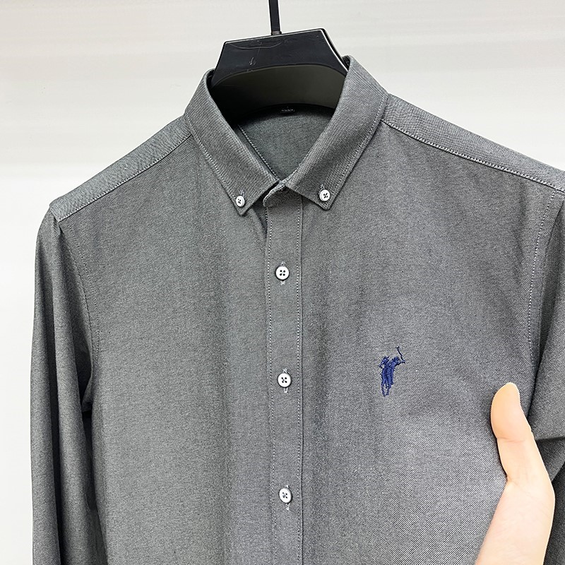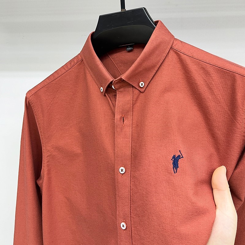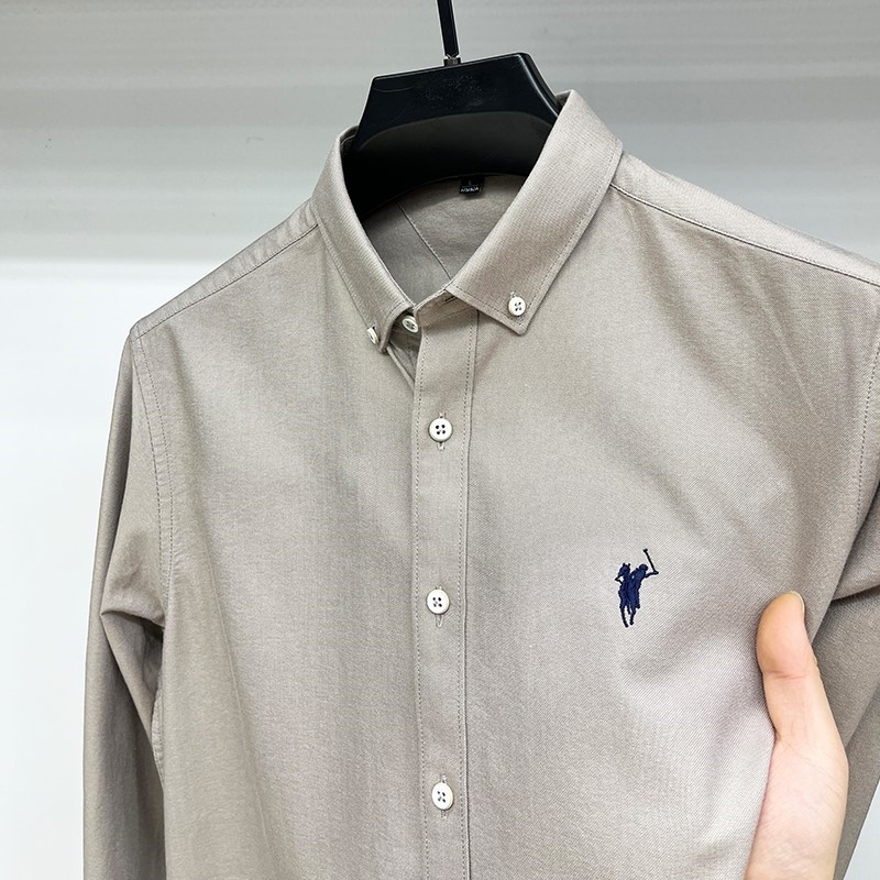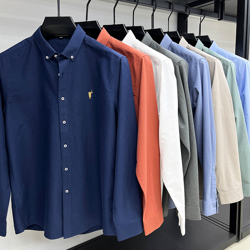 保罗刺绣小马标长袖衬衫翻领纯色上衣中年衬衣职业白色寸衣全棉薄