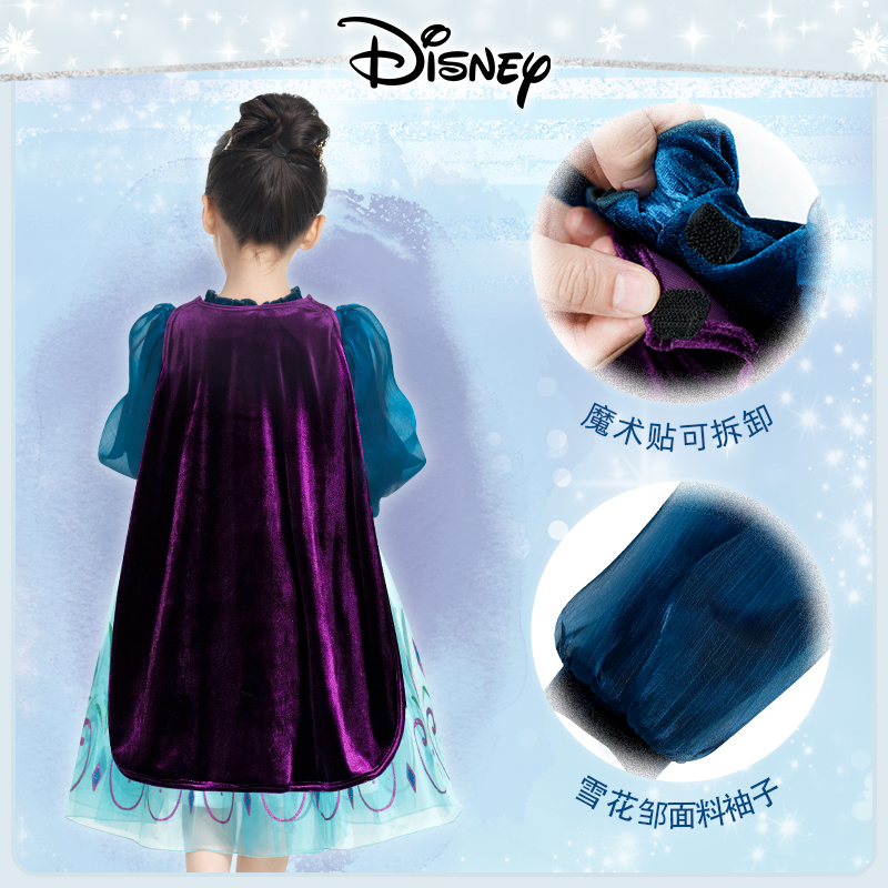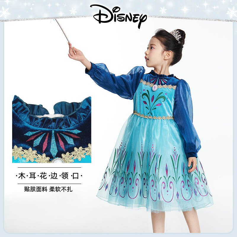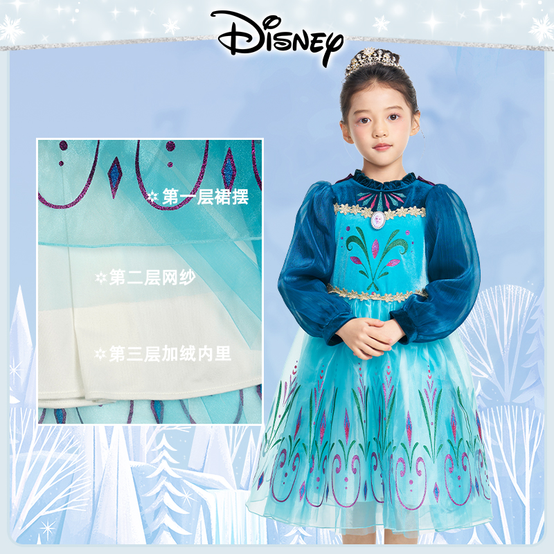 迪士尼冰雪奇缘艾莎公主裙加绒保暖女童礼服蓬蓬裙演出服女孩生日